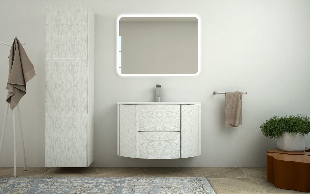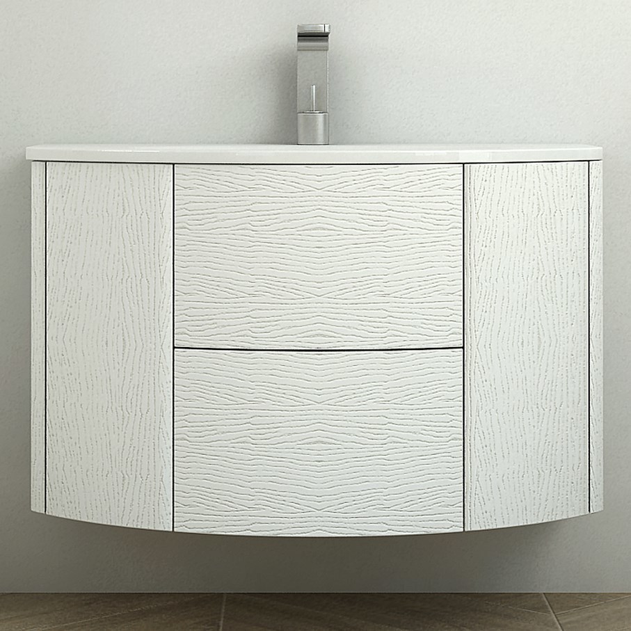 Тумба подвесная Cezares Eden 90 см с раковиной из искусственного мрамора 50177, оснащена доводчиками, цвет - Frassino bianco. Система хранения: 2 выдвижных ящика, 2 дверцы.