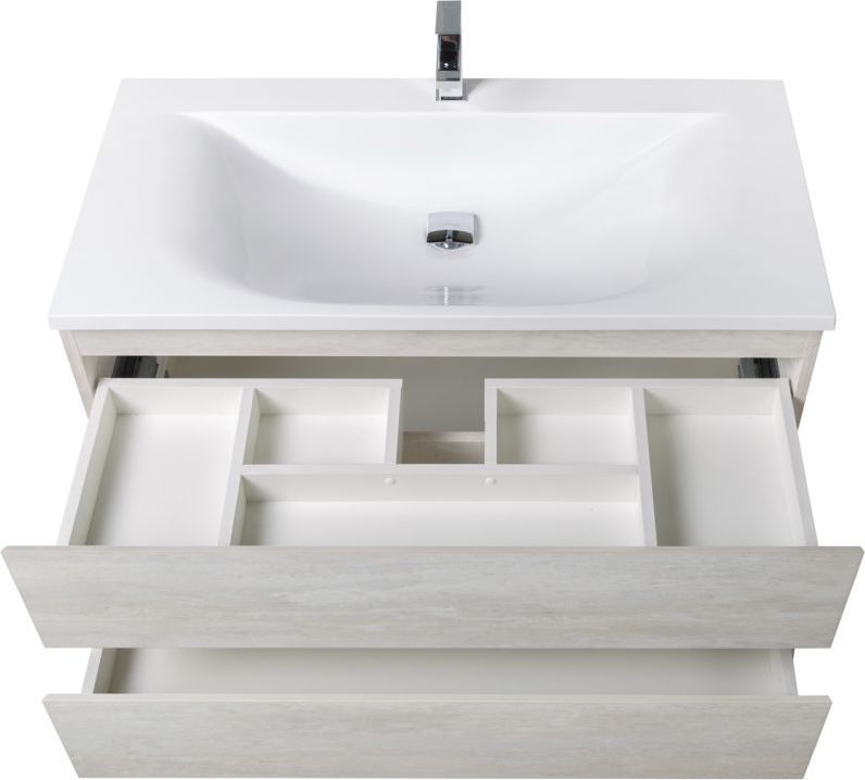 Тумба подвесная Cezares Molveno 100 см с раковиной из литьевого мрамора CEZ1000/500-LV-MR, цвет - Legno Bianco.