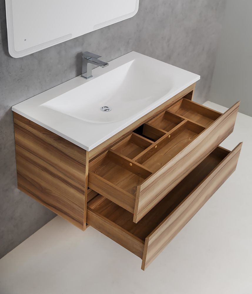 Тумба подвесная Cezares Molveno 100 см с раковиной из литьевого мрамора CEZ1000/500-LV-MR, цвет - Noce Nature.