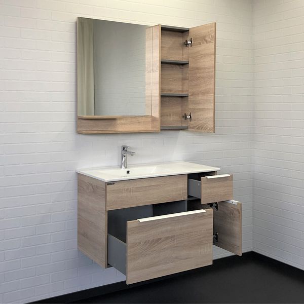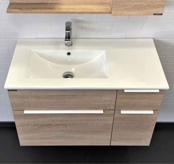Тумба подвесная Comforty Варна 90 см с раковиной Comforty 9090EL, цвет дуб сонома.