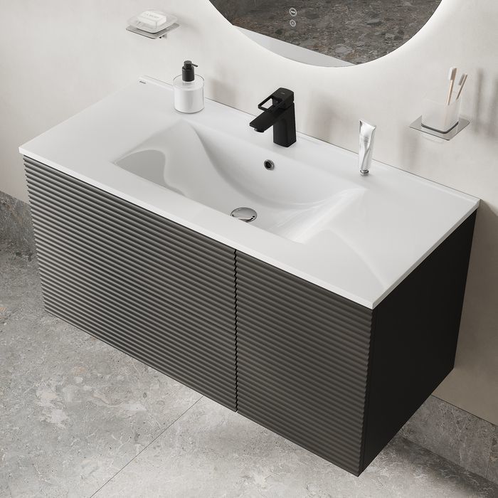 Тумба подвесная Iddis Bild 100 см BIL10G0i95K с раковиной, цвет тёмно-серый.