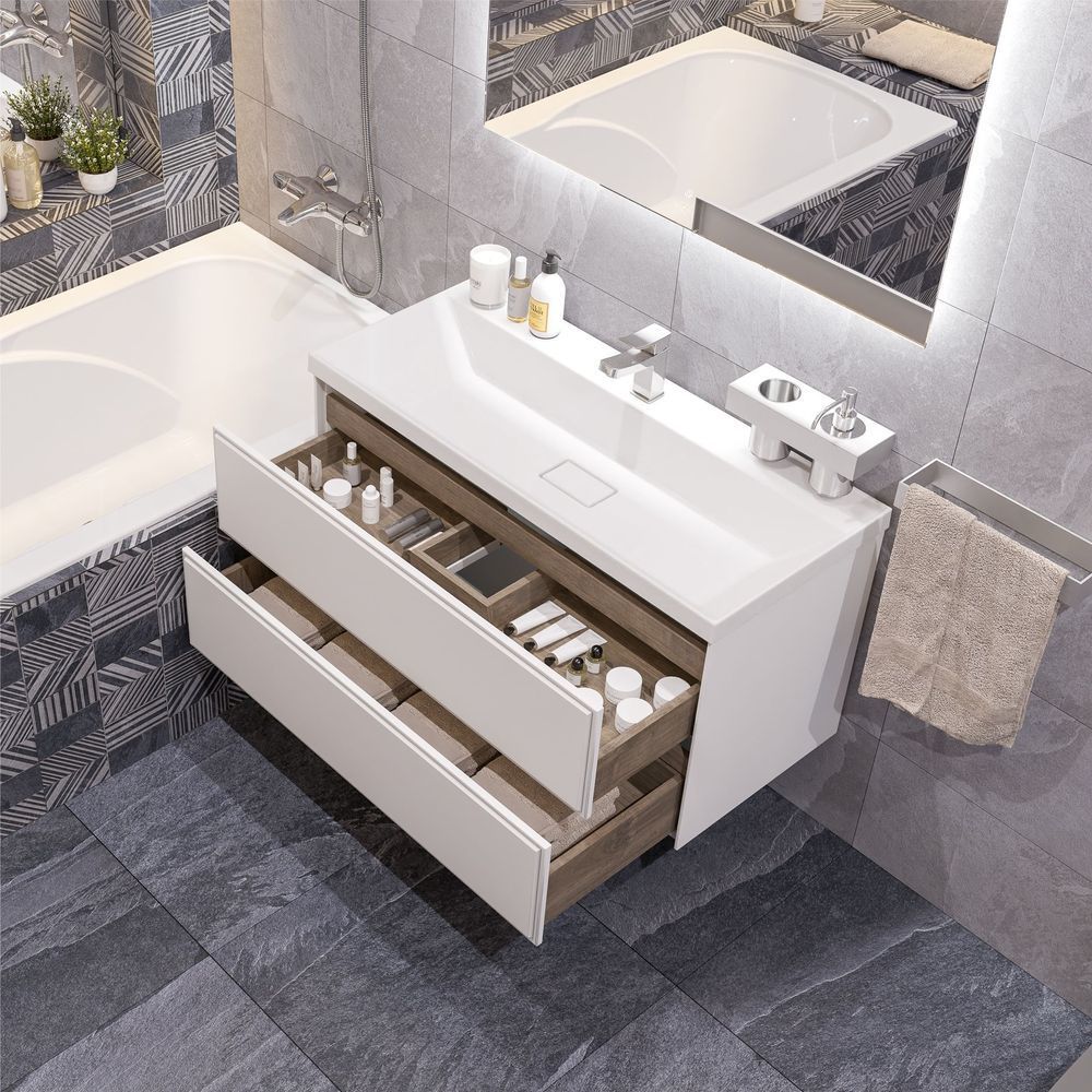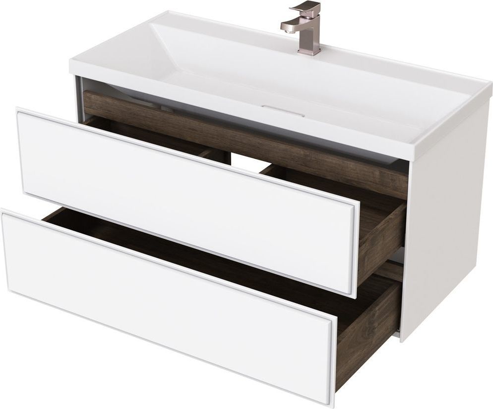 Тумба подвесная с раковиной Mirsant Dante 100 см (раковина Style 100) белый
