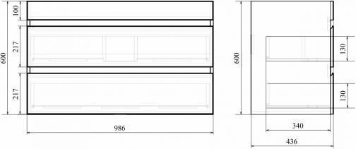Тумба подвесная Mirsant Next 100/2 с раковиной Premier 1000, 2 ящика, цвет белый.