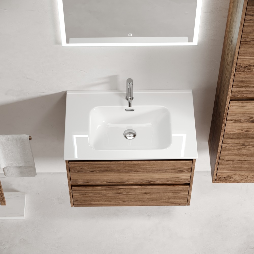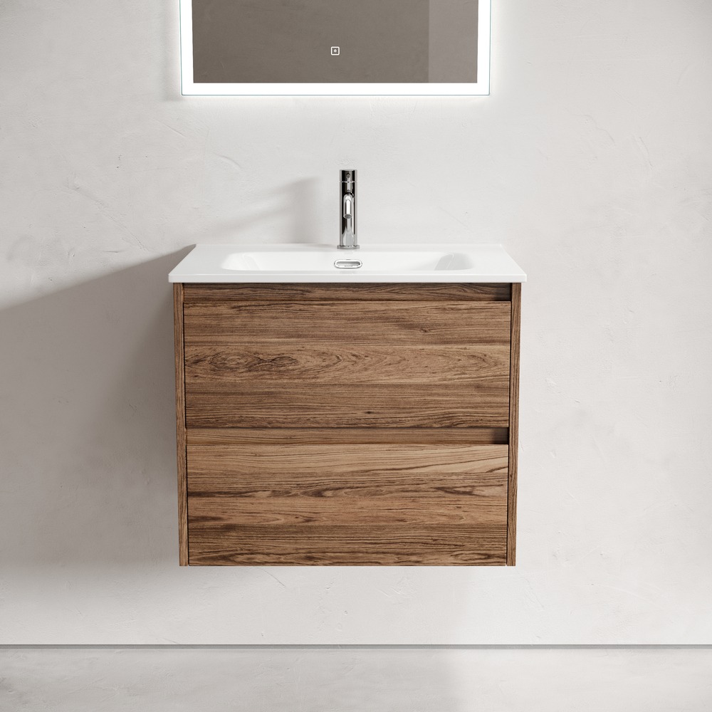 Тумба подвесная с раковиной Sancos Libra 60 см LB60ECH, дуб чарльстон (раковина Element CN7001) - фото