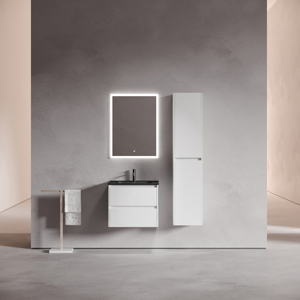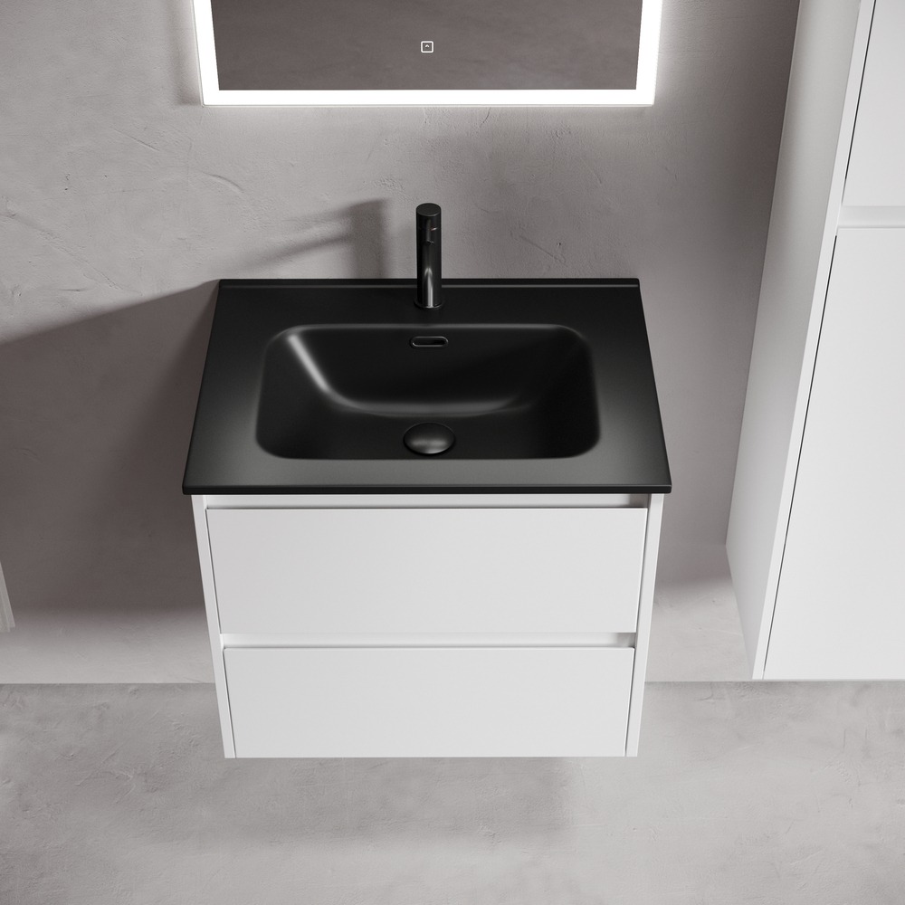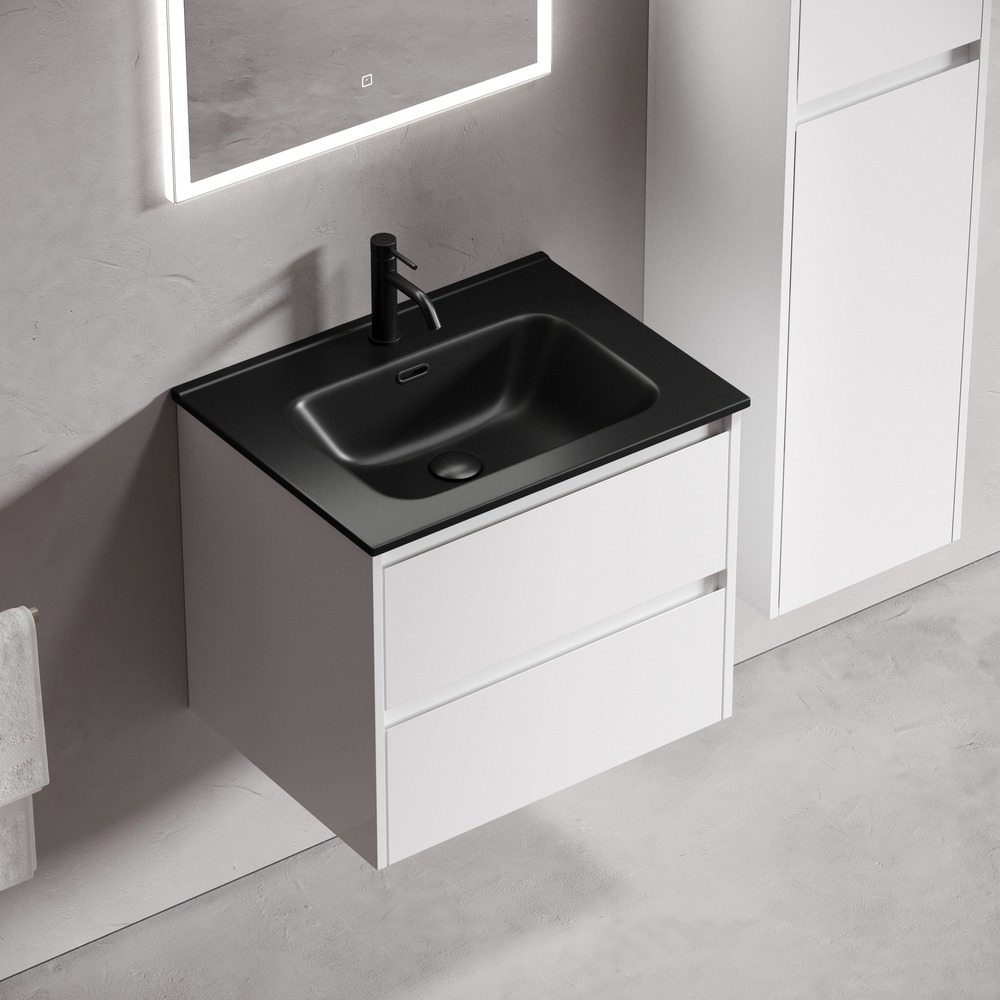 Тумба подвесная Sancos Libra 60 см LB60W c доводчиком и раковиной Element CN7001MB, цвет белый глянец.