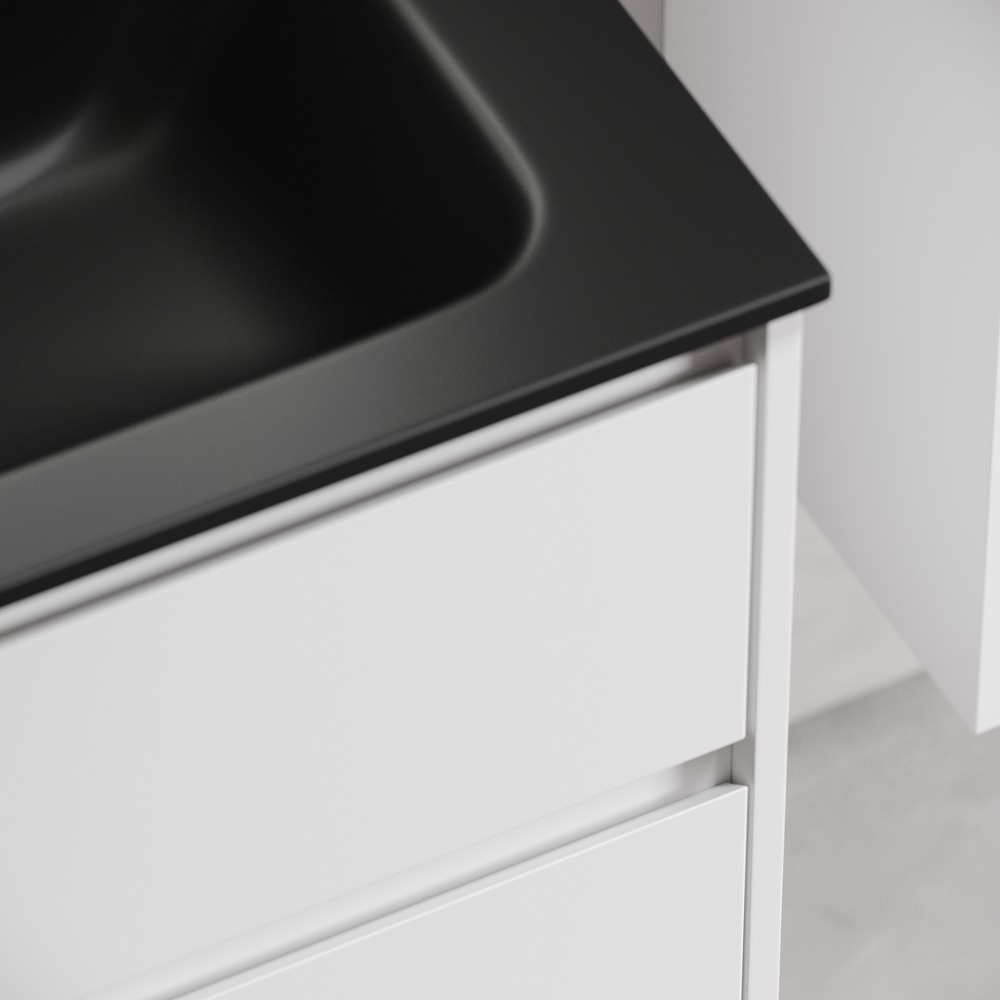 • Тумба подвесная Libra c двумя ящиками оснащенными доводчиками скрытого монтажа с системой плавного закрывания и с ручкой по всей длине ящика. Каркас и фасад тумбы выполнен из МДФ в цвете «белый глянец».