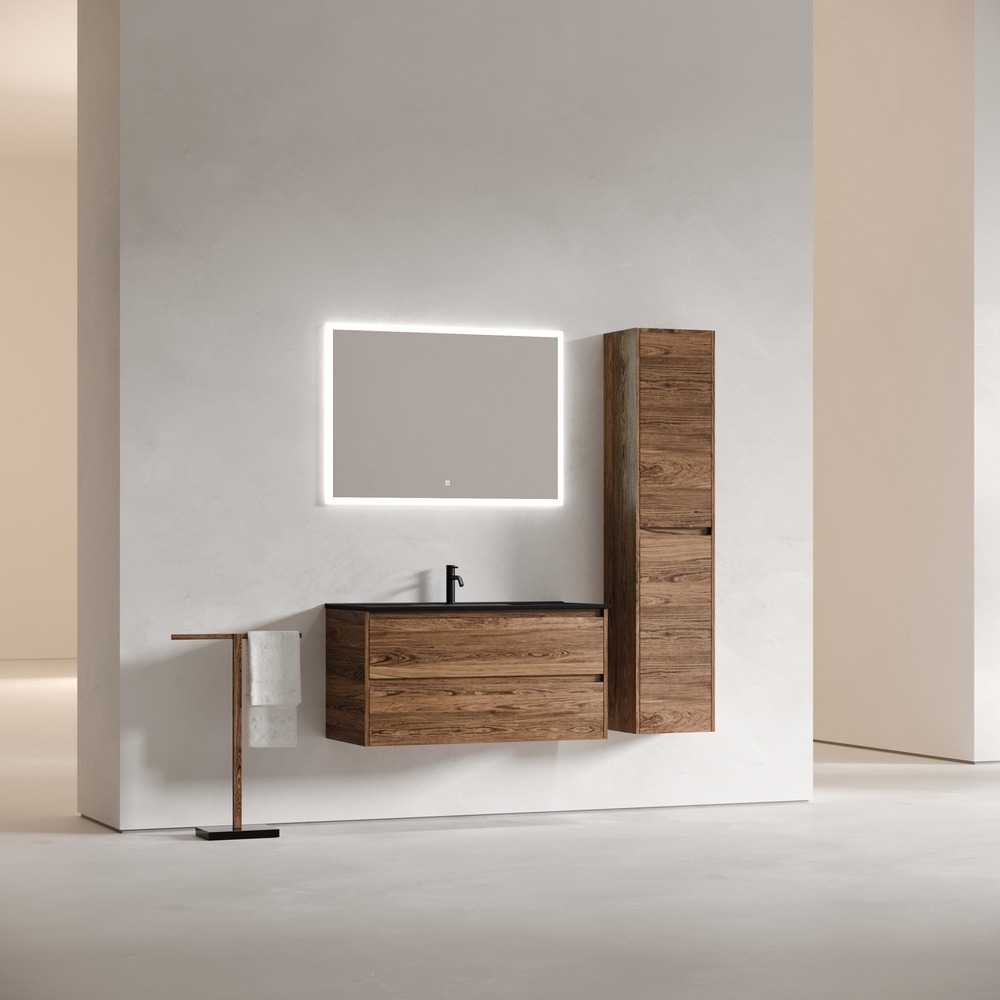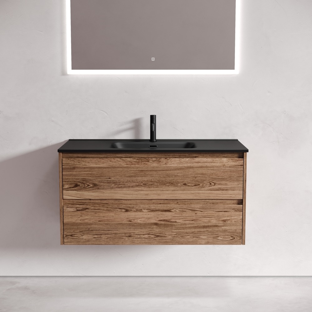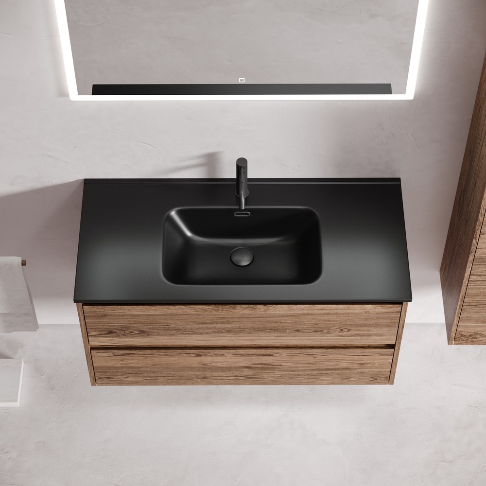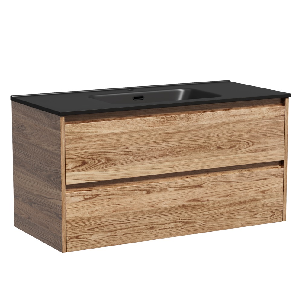 Тумба подвесная Sancos Libra 100 см LB100ECH c доводчиком и раковиной-столешницей Element CN7003MB, цвет дуб чарльстон.