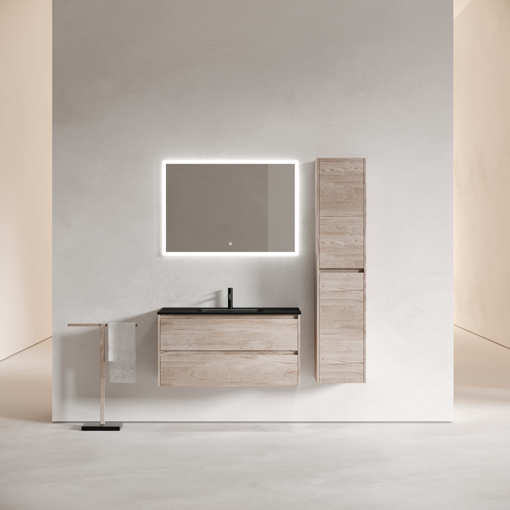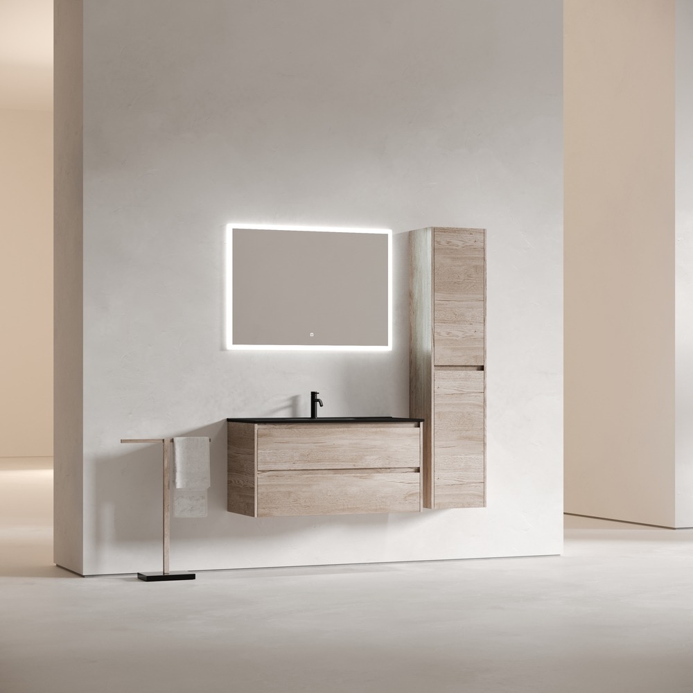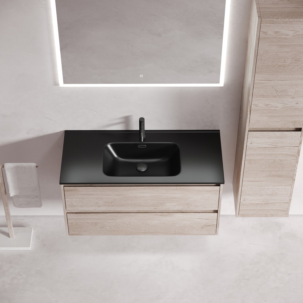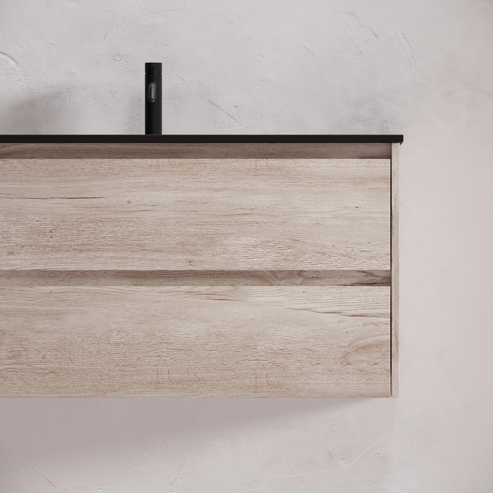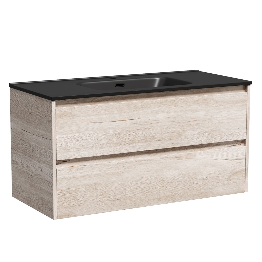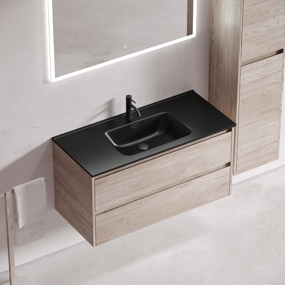 Тумба подвесная Sancos Libra 100 см LB100EG c доводчиком и раковиной-столешницей Element CN7003MB, цвет дуб галифакс натуральный.