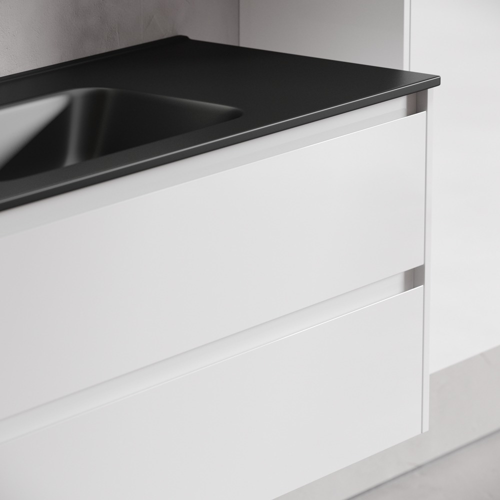 • Тумба подвесная Libra c двумя ящиками оснащенными доводчиками скрытого монтажа с системой плавного закрывания и с ручкой по всей длине ящика. Каркас и фасад тумбы выполнен из МДФ в цвете «белый глянец».