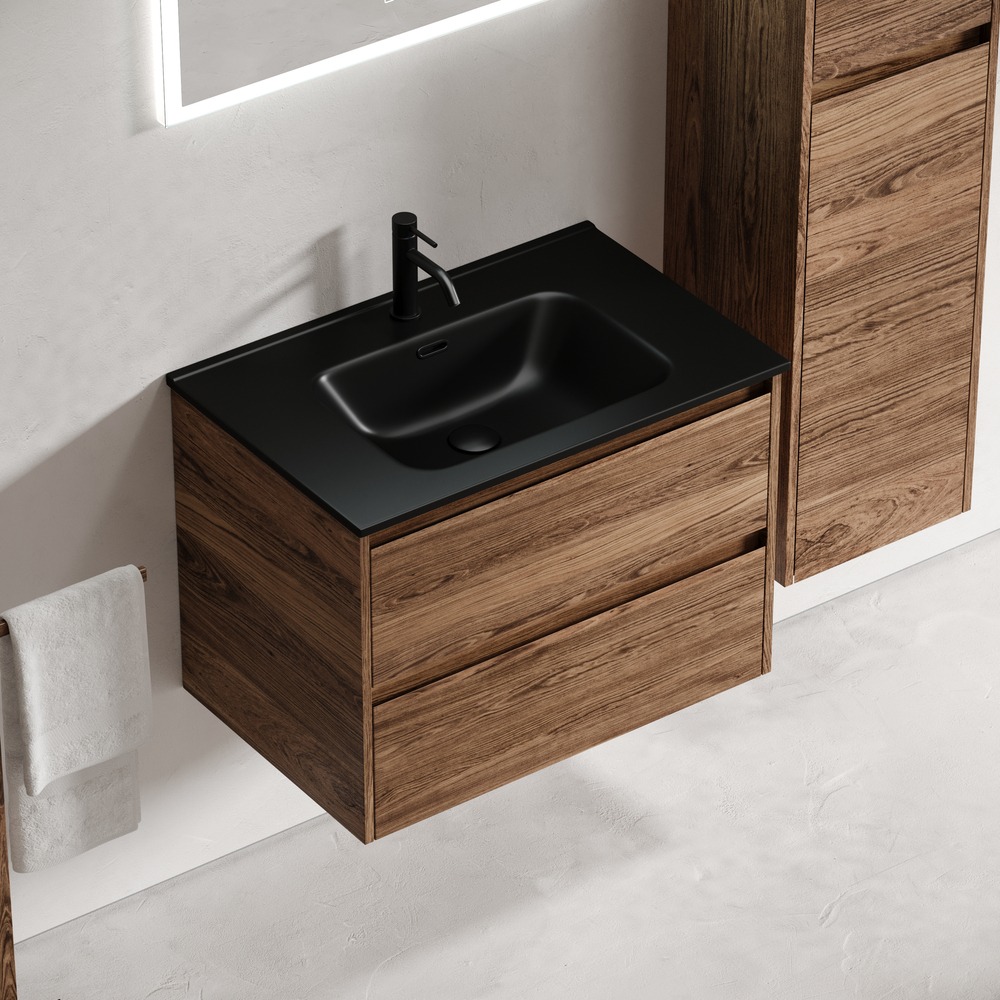 Тумба подвесная Sancos Libra 70 см LB70ECH c доводчиком и раковиной-столешницей Element CN7007MB, цвет дуб чарльстон.