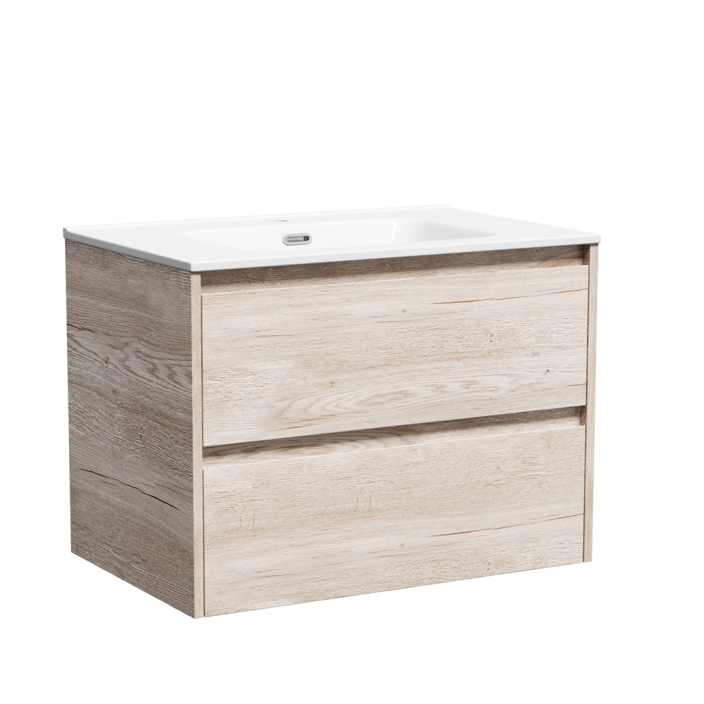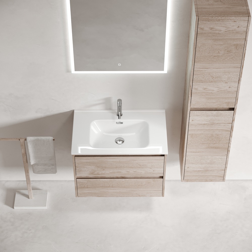 Тумба подвесная с раковиной-столешницей Sancos Libra 70 см LB70EG, дуб галифакс натуральный (раковина Element CN7007)