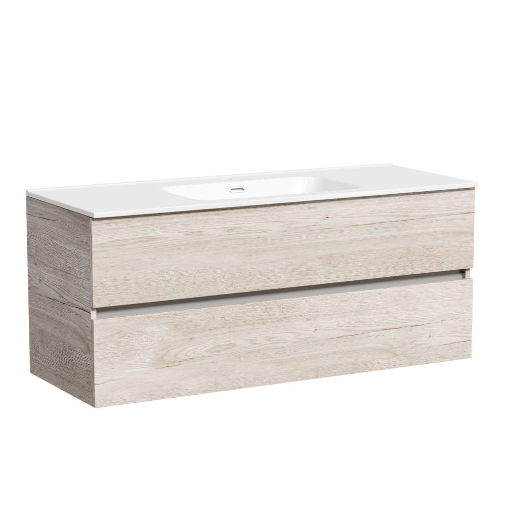 Тумба подвесная с раковиной-столешницей Sancos Urban 120 см UR120-1EG, дуб галифакс натуральный (раковина Element CN7006)