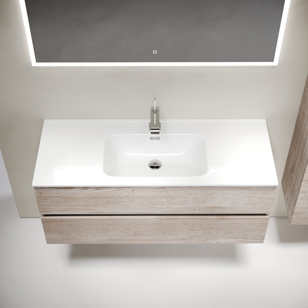 Тумба подвесная с раковиной-столешницей Sancos Urban 120 см UR120-1EG, дуб галифакс натуральный (раковина Element CN7006) - фото