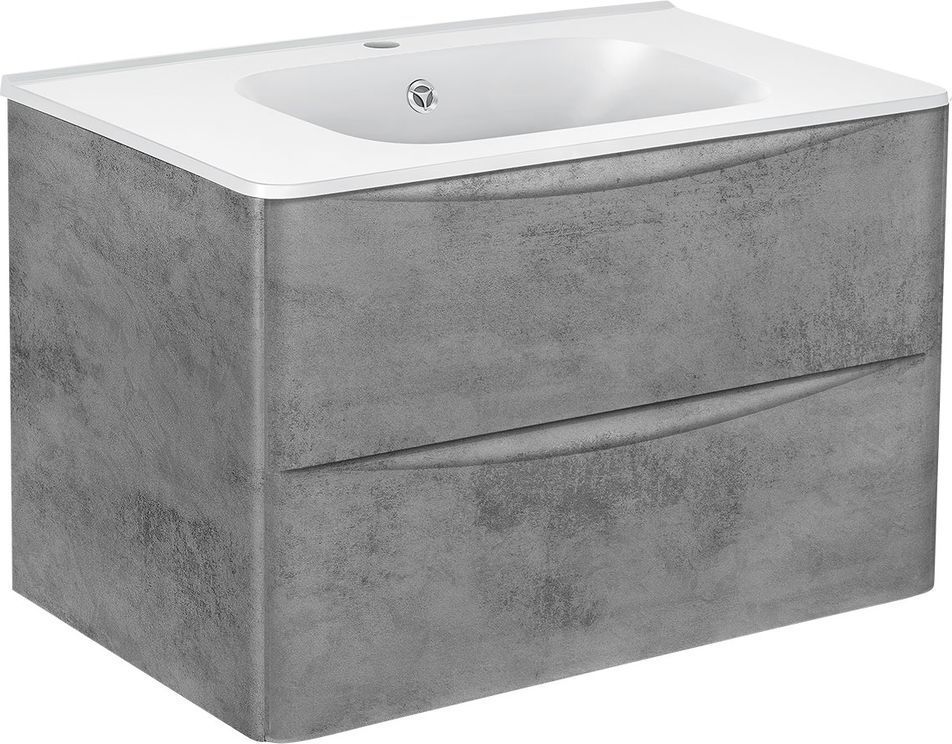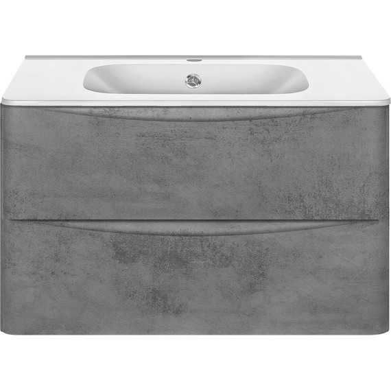 Тумба подвесная Vincea Paola 80 см с раковиной из искусственного камня VCB-2VP800W, система хранения: 2 выкатных ящика с доводчиками, цвет - бетон.