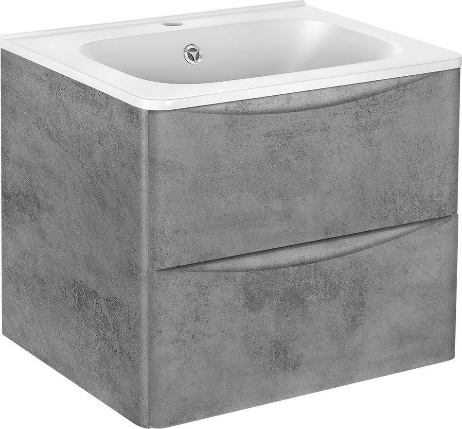 Тумба подвесная Vincea Paola 60 см с раковиной из искусственного камня VCB-2VP600W, система хранения: 2 выкатных ящика с доводчиками, цвет - бетон.