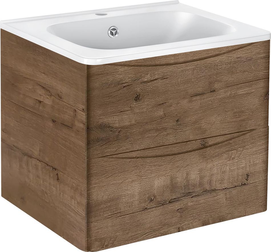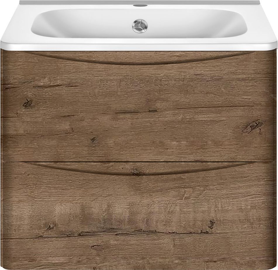 Тумба подвесная Vincea Paola 60 см с раковиной из искусственного камня VCB-2VP600W, система хранения: 2 выкатных ящика с доводчиками, цвет - дуб винтаж.