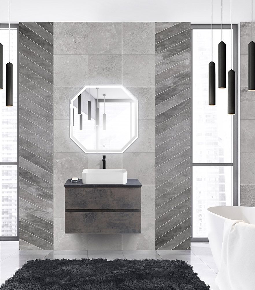 Тумба подвесная со столешницей Cezares Molveno 80 см, цвет тумбы - Ossido, цвет столешницы - Marmo Nero Opaco (Чёрный матовый мрамор). Раковина и смеситель приобретаются отдельно.