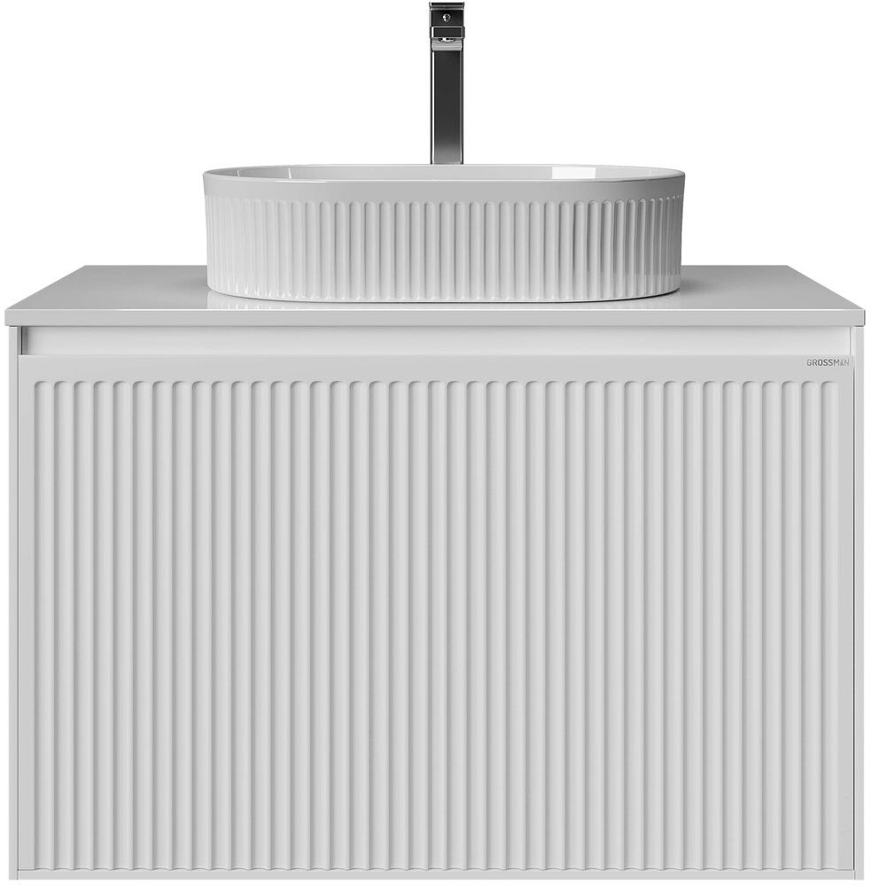 Тумба подвесная Grossman Кристалл 80 см со столешницей, цвет белый глянцевый.