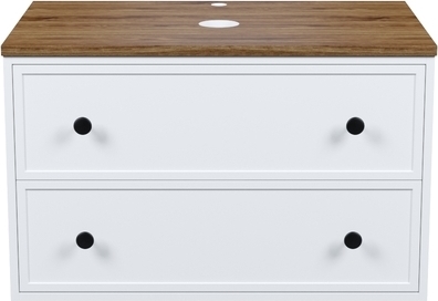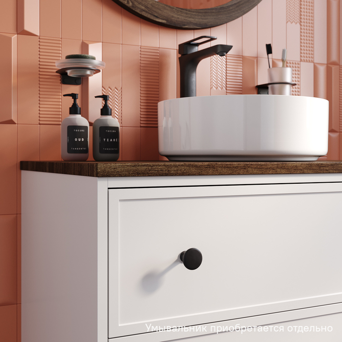 Вместительная подвесная тумба Torr классического молочно-белого цвета со столешницей из МДФ в оттенке ореха макадамия. Сочетает в себе узнаваемый стиль и практичность популярного скандинавского дизайна. Ее четкие формы, теплый цвет столешницы, фасады с декоративной филенкой, круглые ручки смотрятся гармонично и впишутся в любой современный интерьер. Подойдет любой накладной умывальник, покупается отдельно.