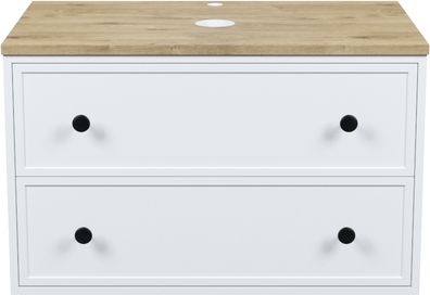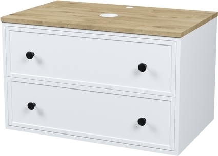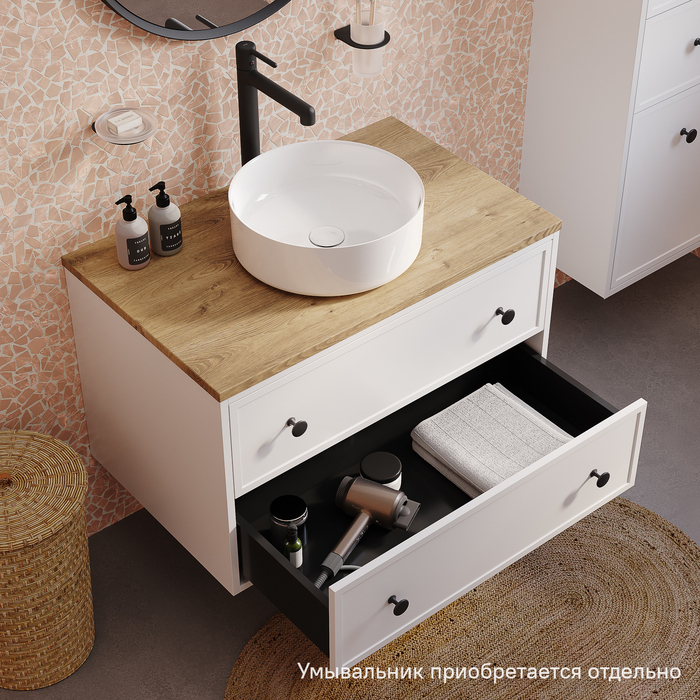 Вместительная подвесная тумба Torr классического молочно-белого цвета со столешницей из МДФ в оттенке ореха макадамия. Сочетает в себе узнаваемый стиль и практичность популярного скандинавского дизайна. Ее четкие формы, теплый цвет столешницы, фасады с декоративной филенкой, круглые ручки смотрятся гармонично и впишутся в любой современный интерьер. Подойдет любой накладной умывальник, покупается отдельно.