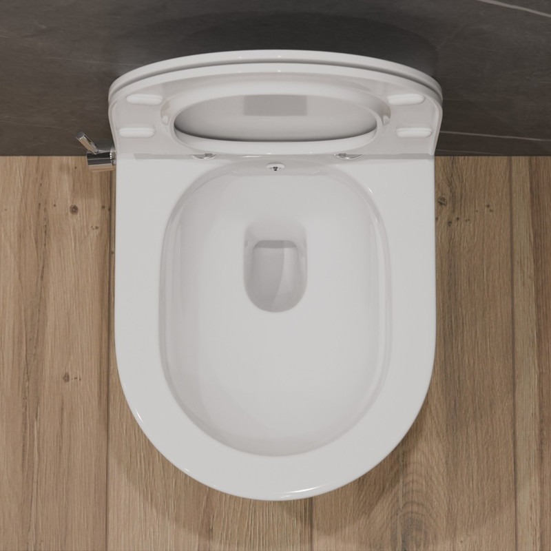 Унитаз-биде подвесной безободковый EvaGold EG070012, каскадный слив, сиденье с тонкой крышкой микролифт, цвет белый.