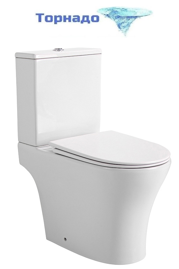 Унитаз-компакт безободковый Azario Reina AZ-2785T с тонким быстросъемным сиденьем микролифт (система смыва Торнадо)
