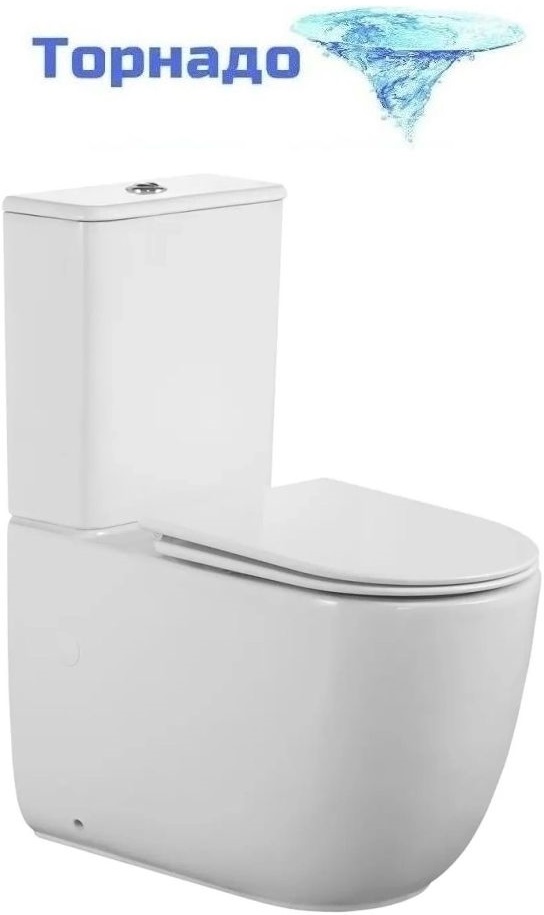 Унитаз-компакт безободковый Cerutti SPA Mirko 11090 с тонкой крышкой микролифт (система смыва Торнадо)