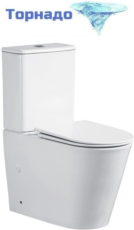 Унитаз-компакт безободковый Cerutti SPA Piera 10560 с тонкой крышкой микролифт (система смыва Торнадо)