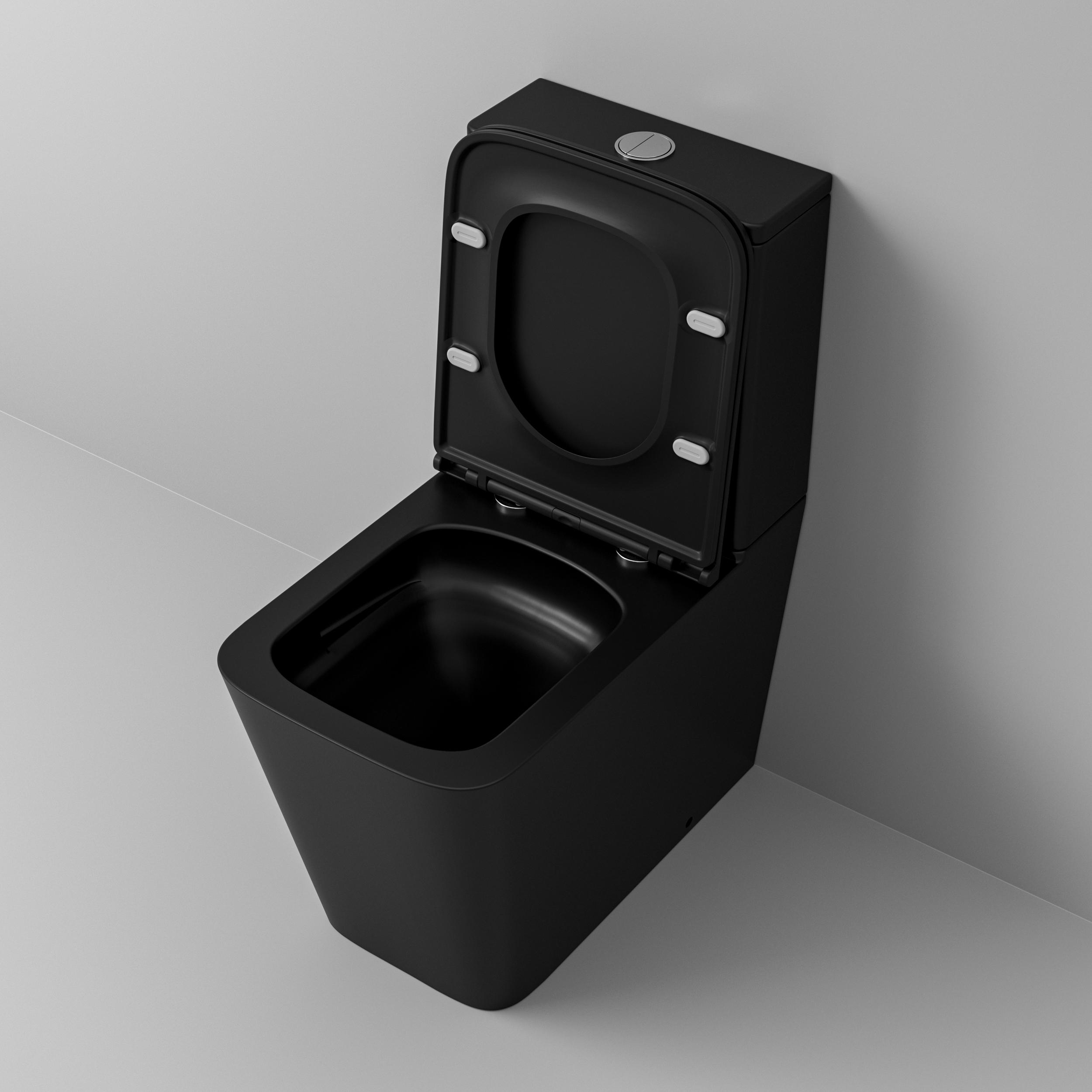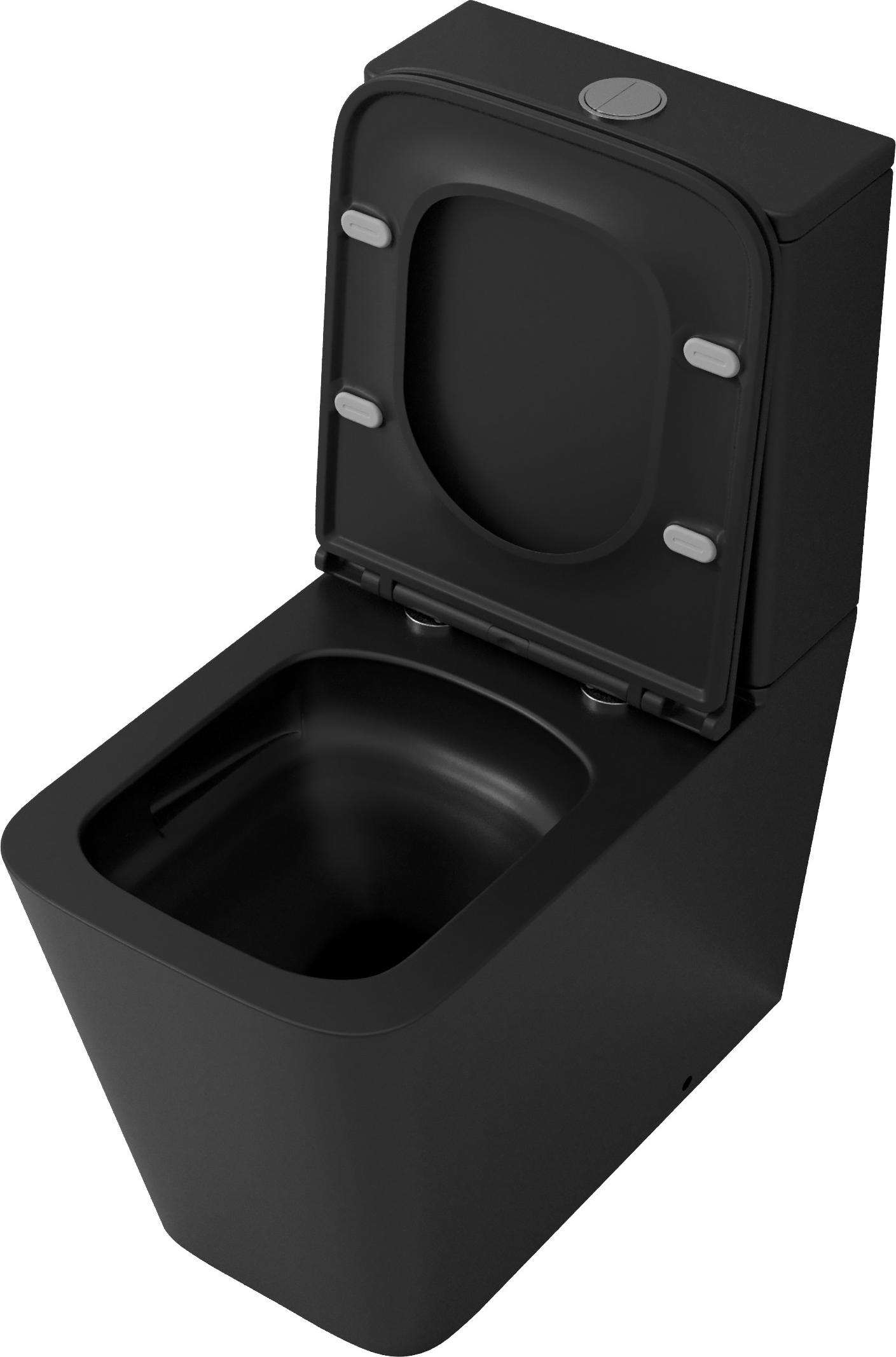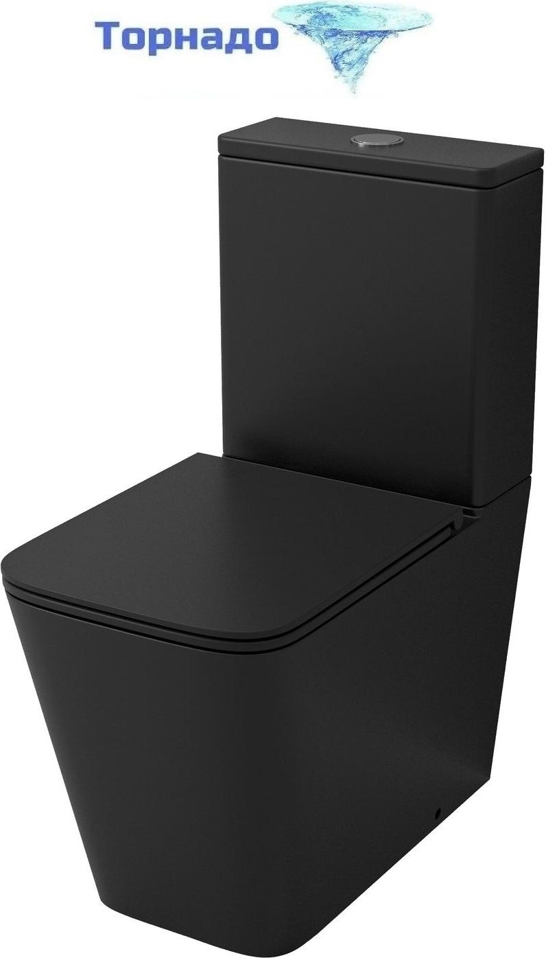 Унитаз-компакт безободковый Grossman GR-4418BMSQ с крышкой микролифт, чёрный матовый (Система смыва торнадо)