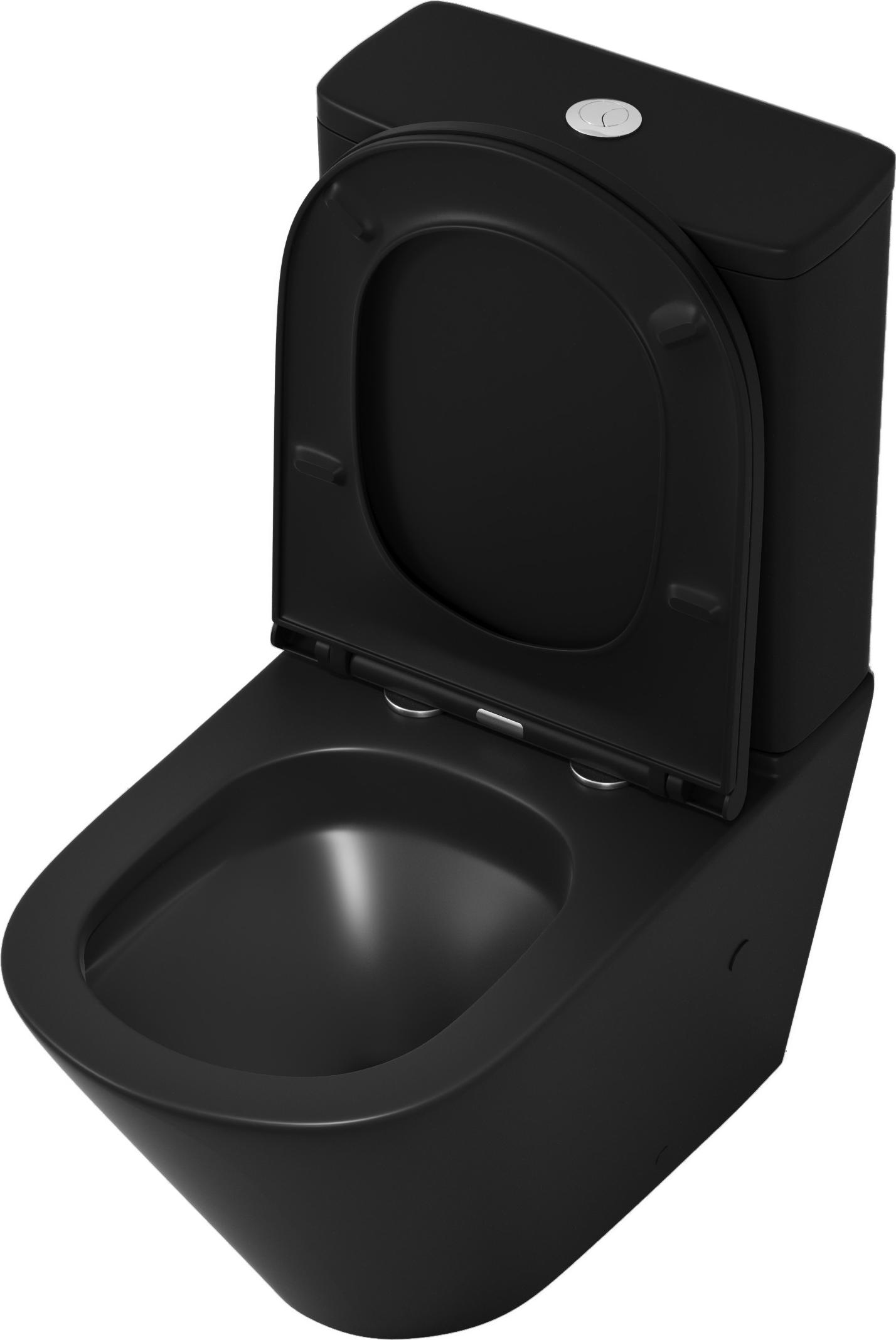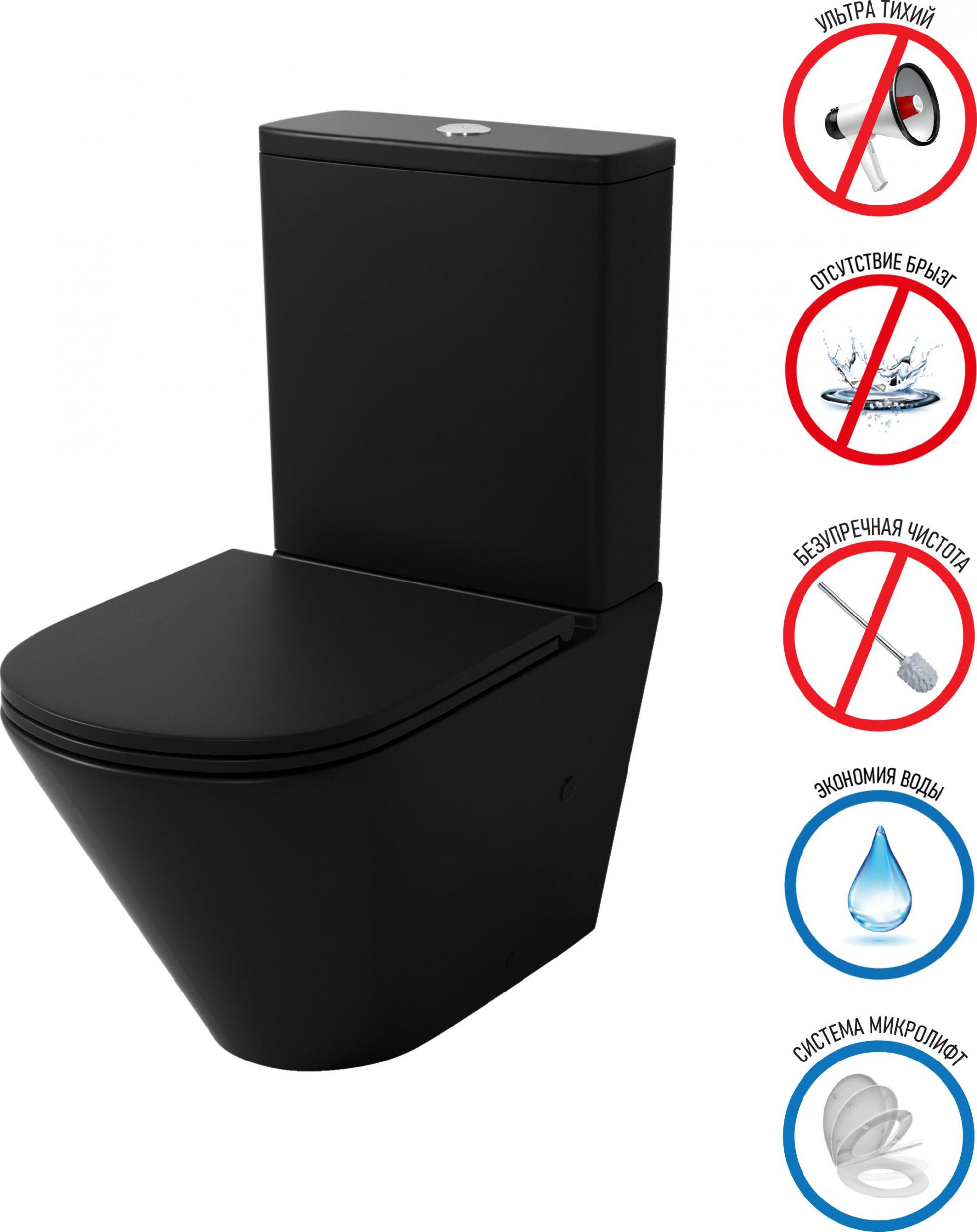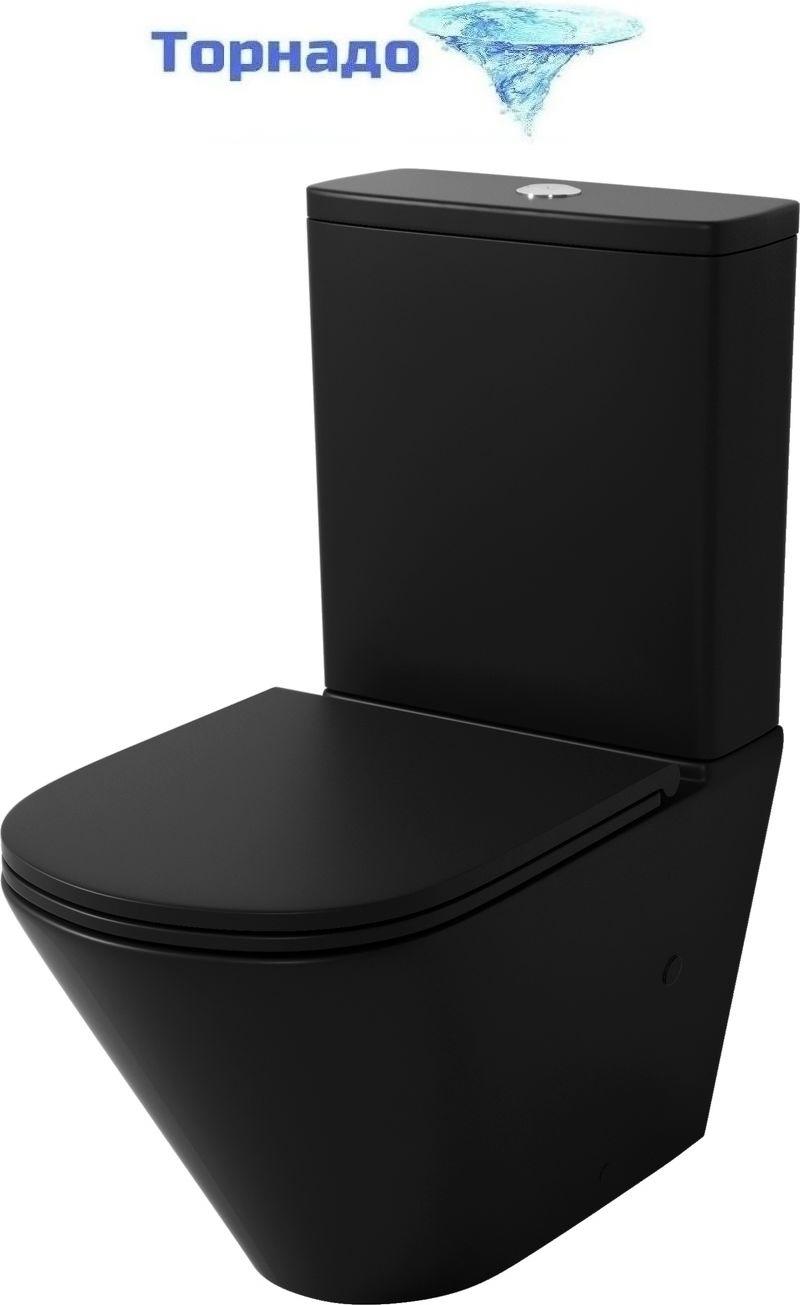 Унитаз-компакт безободковый Grossman GR-4450BMSQ с крышкой микролифт, чёрный матовый (Система смыва торнадо)