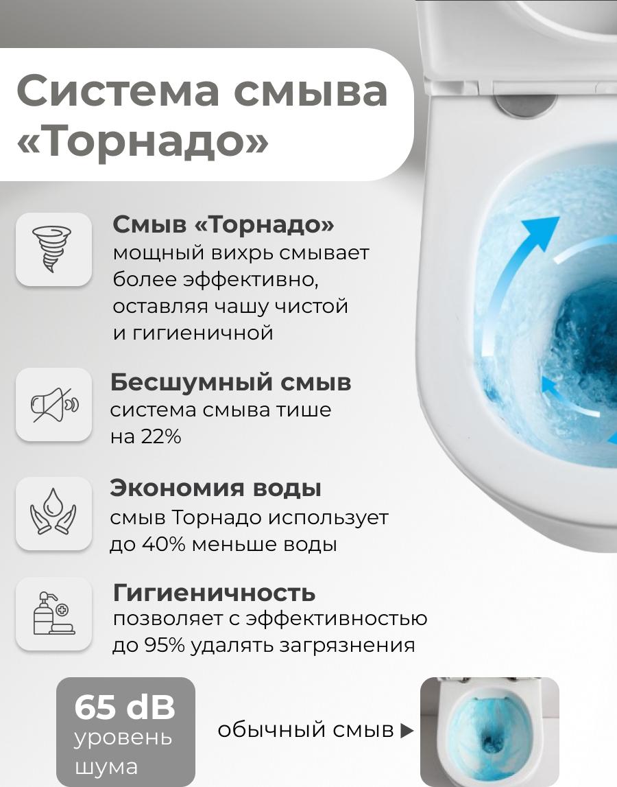 Унитаз-компакт безободковый Grossman GR-4450MSQ с крышкой микролифт, белый матовый (Система смыва торнадо)