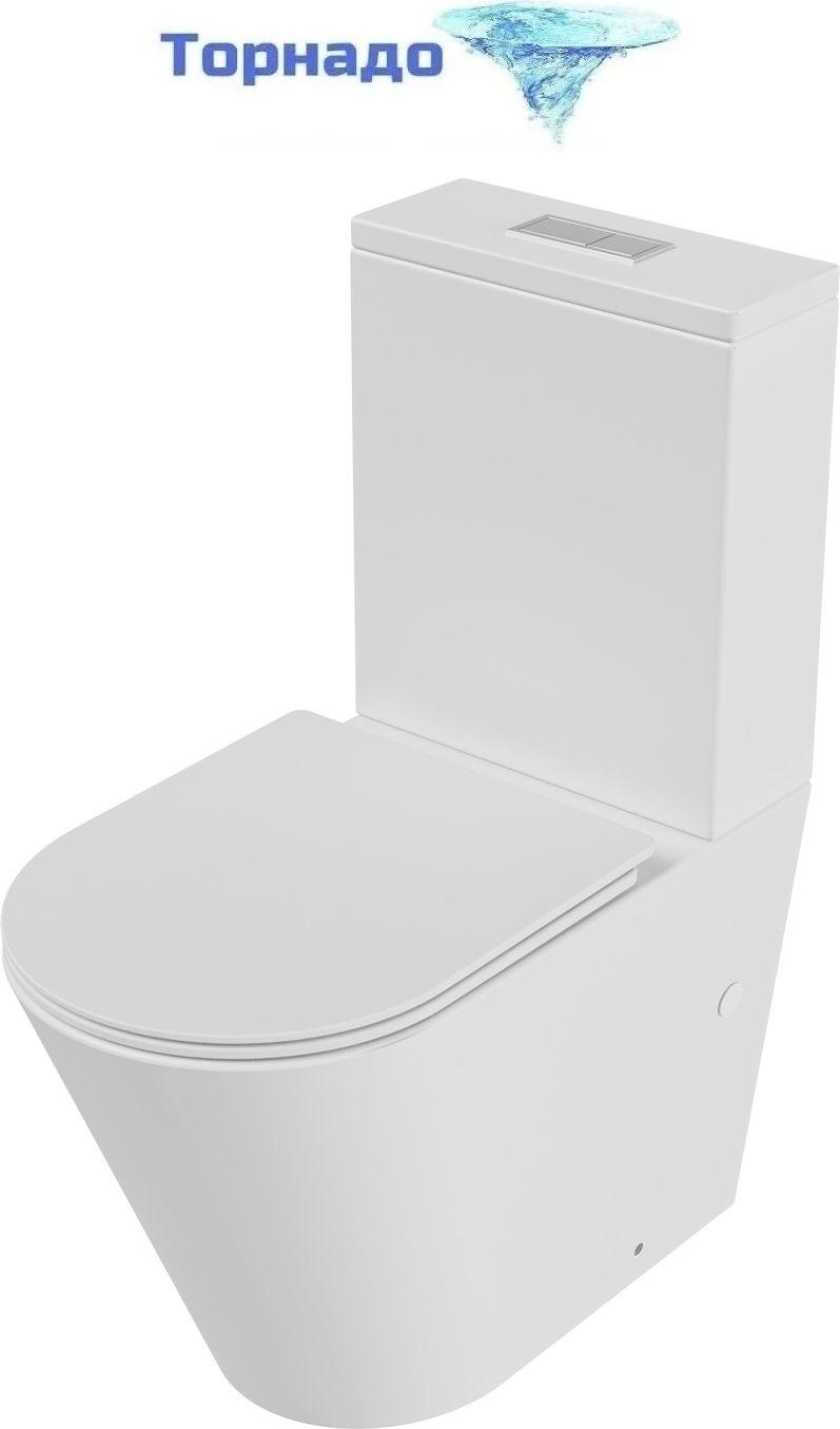 Унитаз-компакт безободковый Grossman GR-4458MSQ с крышкой микролифт, белый матовый (Система смыва торнадо)