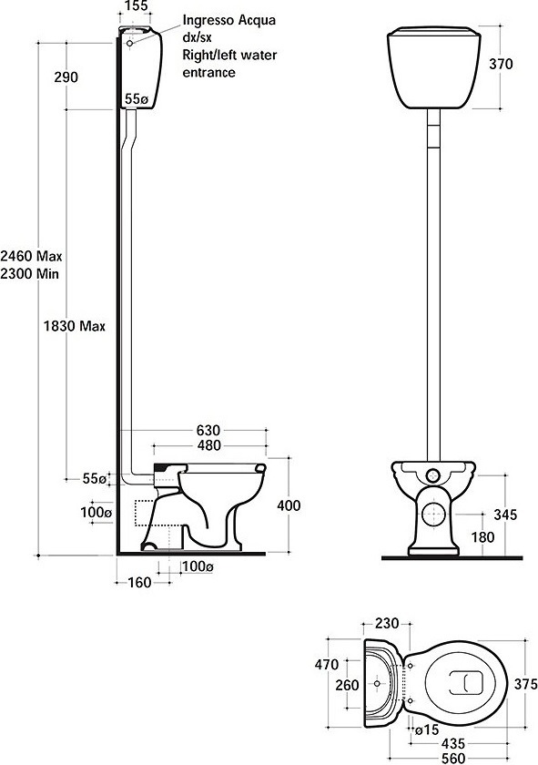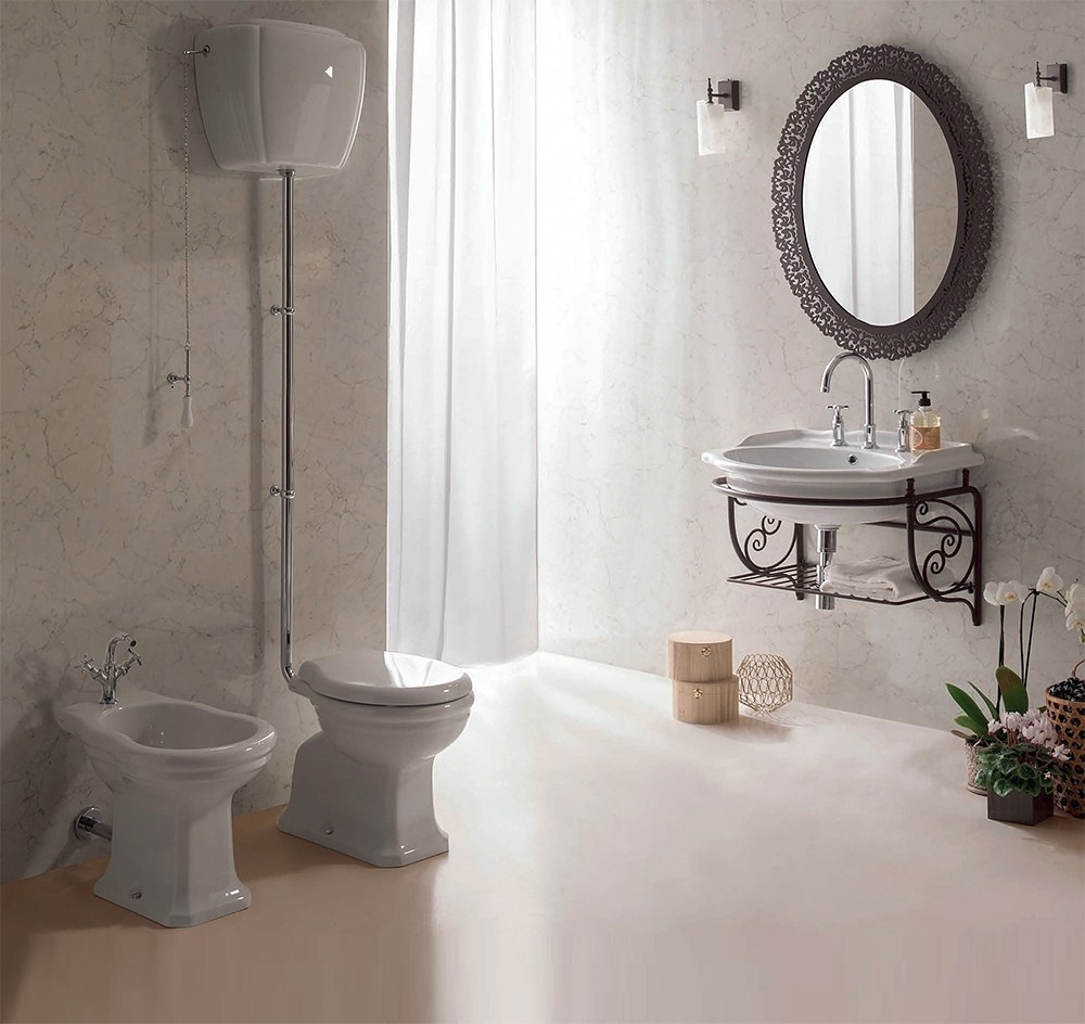 Унитаз-компакт слив вертикальный Globo Paestum PA001.BI, высокая труба BA005cr с механизмом слива BA003cr, бачок подвесной PA010.BI, цвет белый, фурнитура хром. Сиденье с крышкой для унитаза приобретается отдельно.