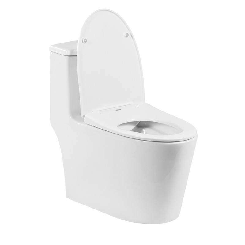 Унитаз-моноблок безободковый EvaGold EG050008, каскадный слив, 2 режима смыва воды, сиденье с тонкой крышкой микролифт, цвет белый.