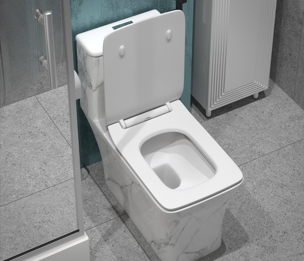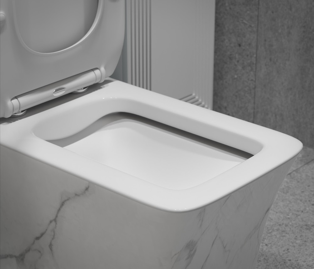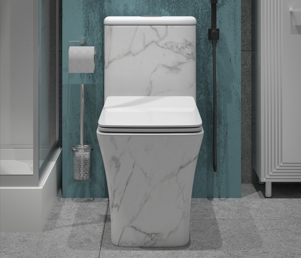 Декор "Мрамор". Унитаз - монолит (моноблок) имеет приемущества перед унитазом-компактом в том, что у него нет соединения между унитазом и бачком, являясь одним целым изделием. Данная технология производства позволяет выполнить оригинальный дизайн изделия, исключить возможность поломки крепления бачка к унитазу, исключить течь между унитазом и бачком, упрощает установку и обслуживание изделия. В комплекте: крепление к полу, арматура двухуровнего слива, сидение с доводчиком.