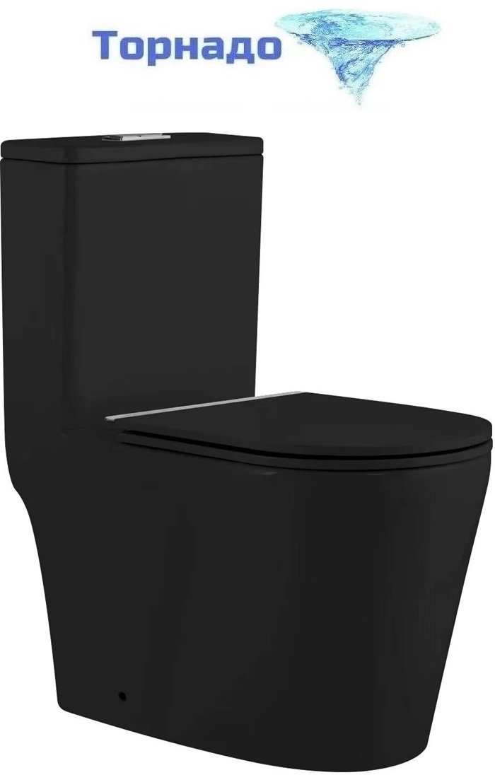 Унитаз-моноблок безободковый SantiLine SL-5029MB с тонкой крышкой микролифт (система смыва Торнадо) чёрный матовый