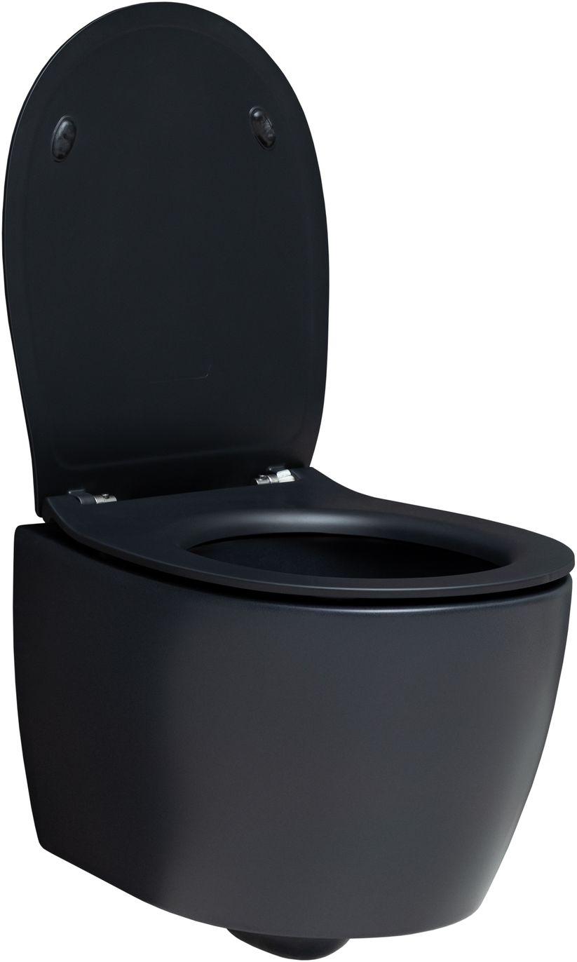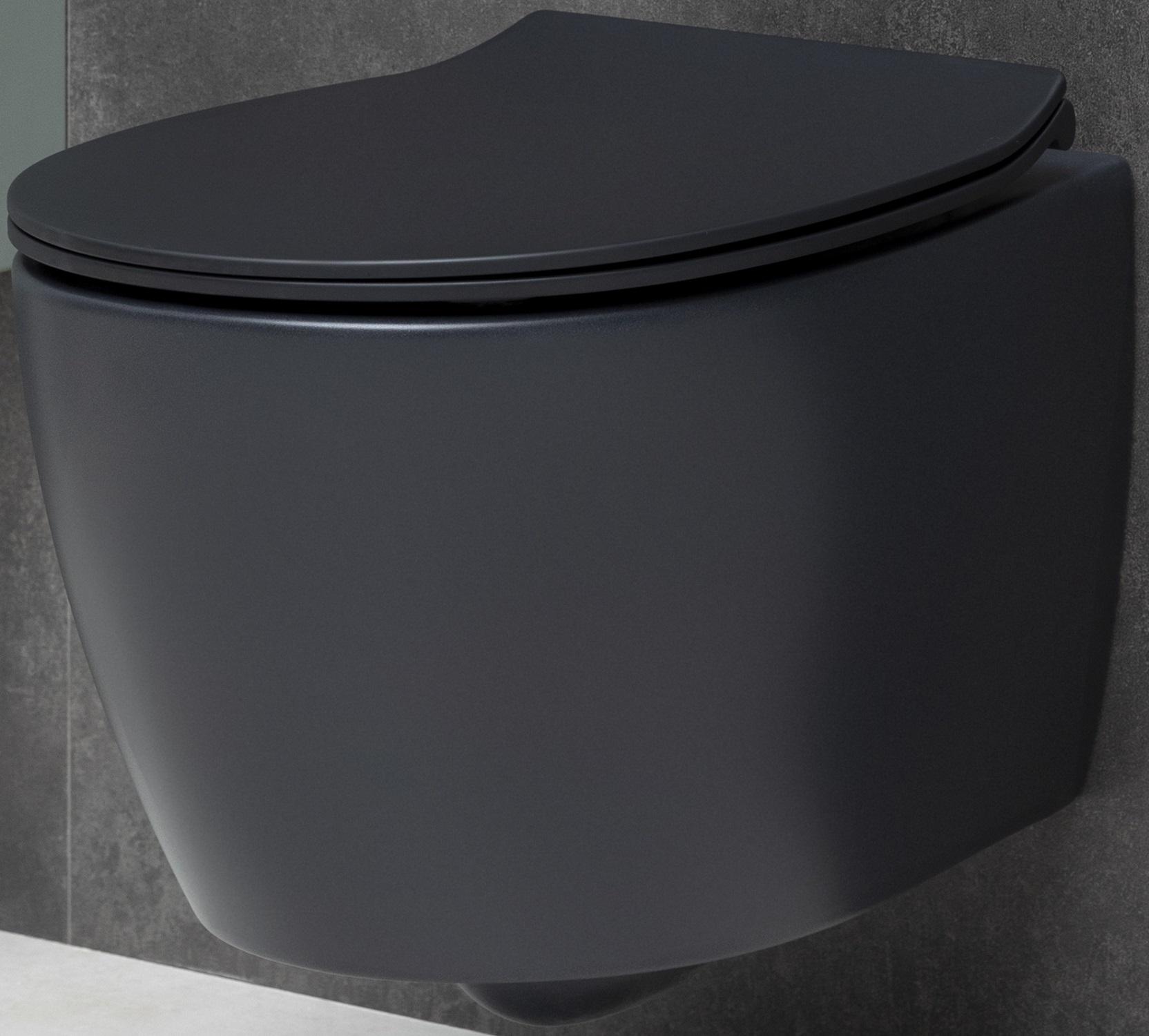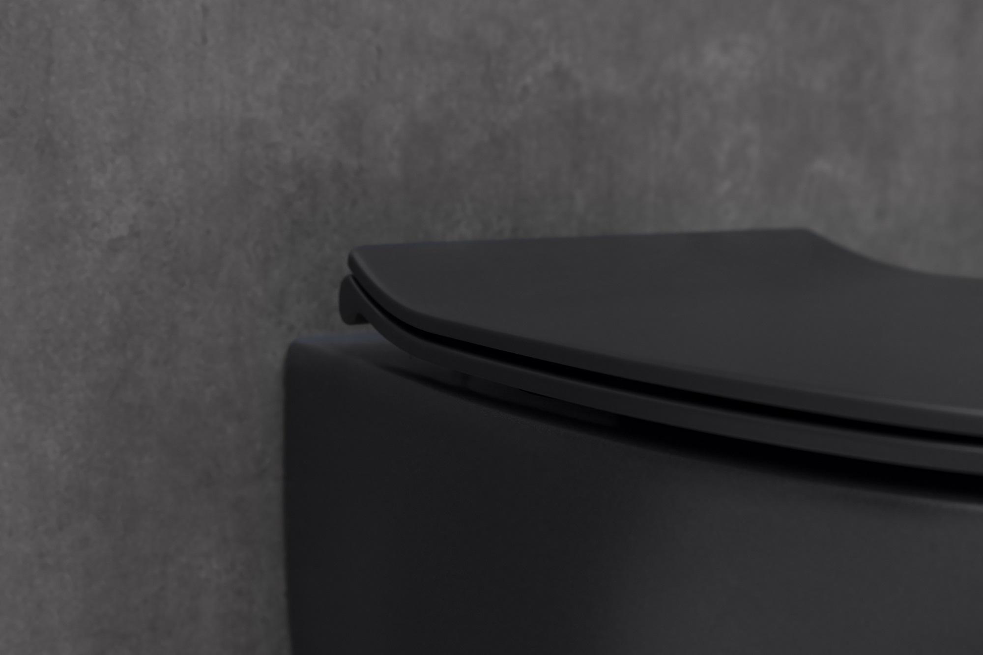 Унитаз подвесной безободковый Allen Brau Fantasy 4.11004.31 с тонкой крышкой микролифт, чёрный матовый
