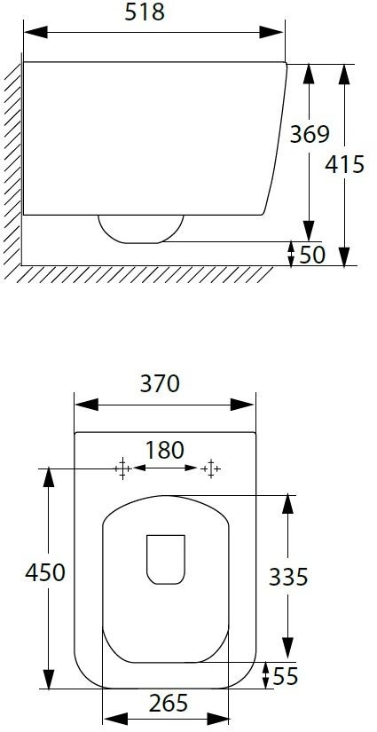 - Безободковая конструкция унитаза с системой смыва Rimless обеспечивает равномерный поток воды, бесшумный и качественный смыв практически без брызг