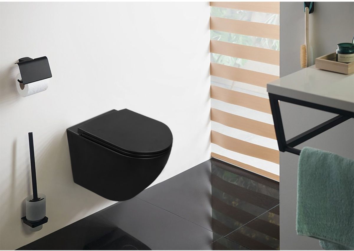 Унитаз подвесной безободковый Azario Grado AZ-0046N-MB с крышкой микролифт, чёрный матовый