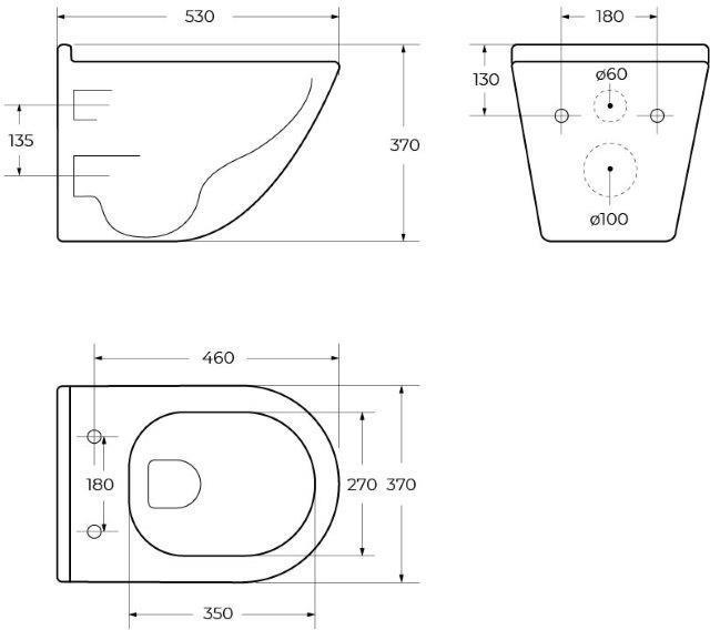 • Конструкция чаши и направление потока смыва полностью исключают выплескивание воды