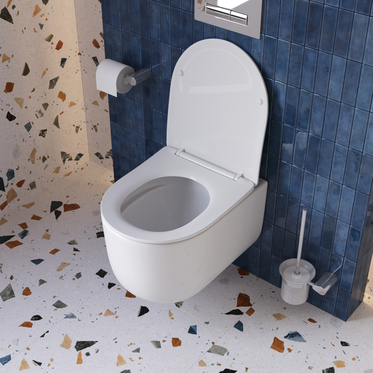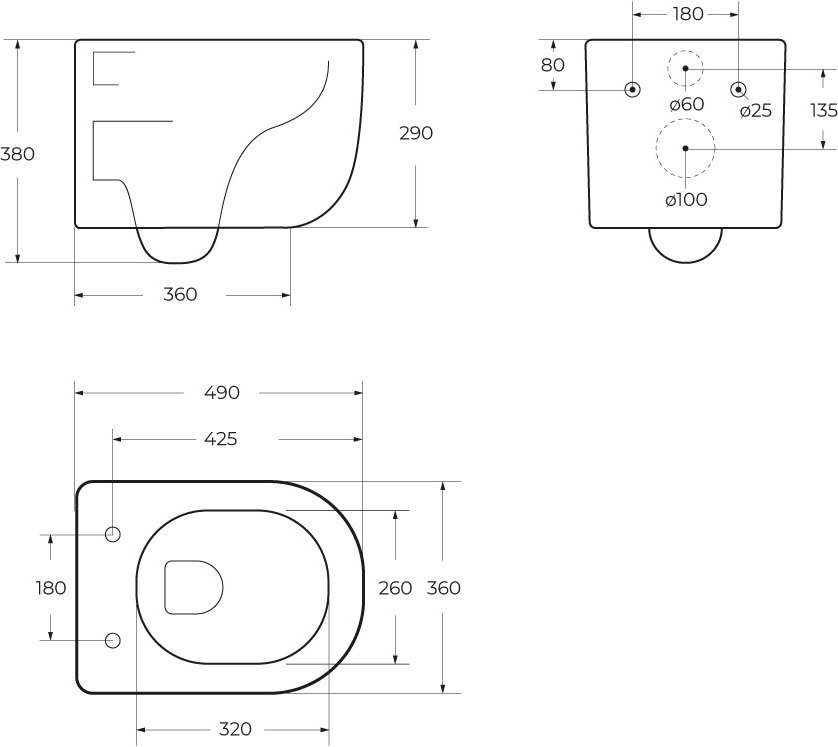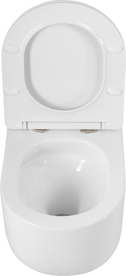 - Конструкция чаши и направление потока смыва полностью исключают выплескивание воды