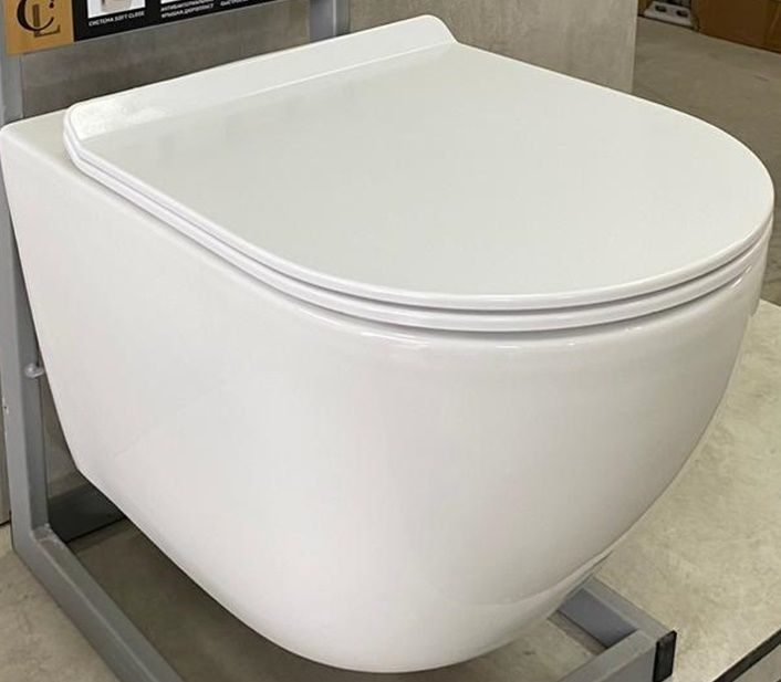 Унитаз подвесной безободковый CeramaLux 2196-2 с тонкой крышкой микролифт