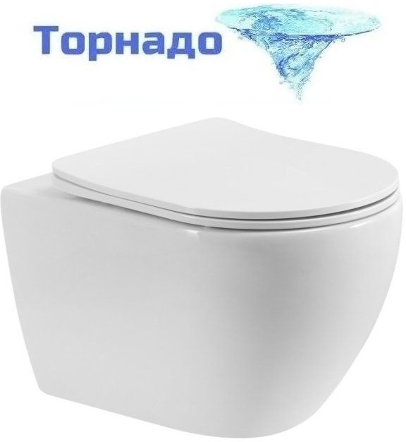 Унитаз подвесной безободковый Cezares Stylus-Tor 2.0 CZR-546-TH-TOR/SC с тонкой крышкой микролифт (система смыва Торнадо)