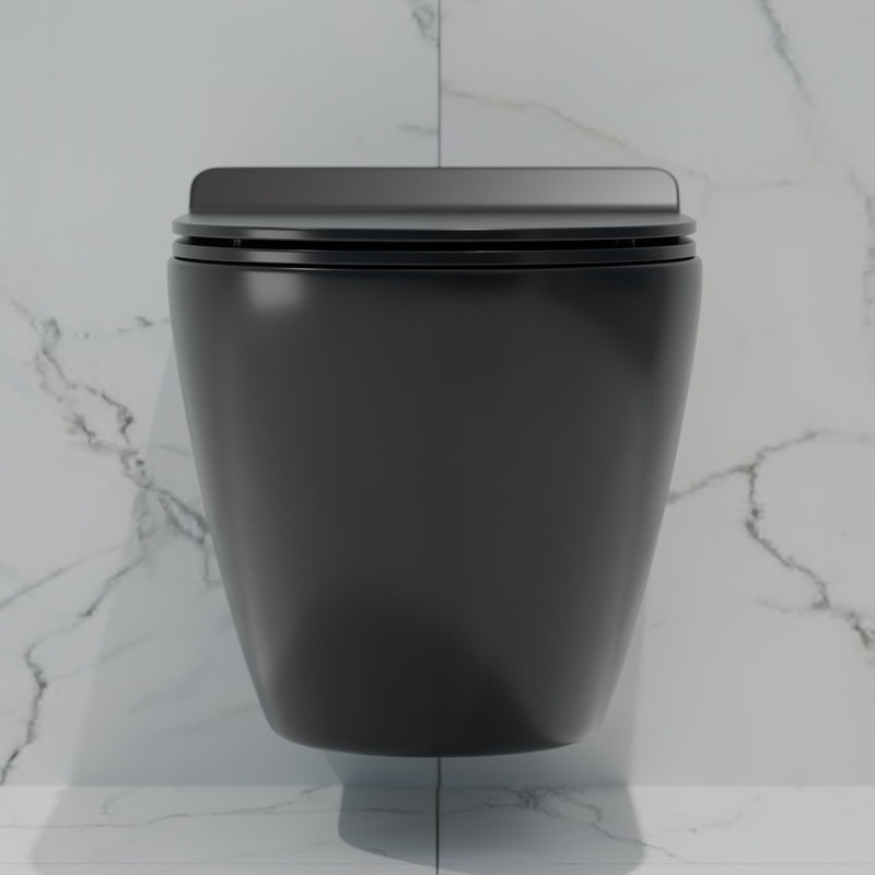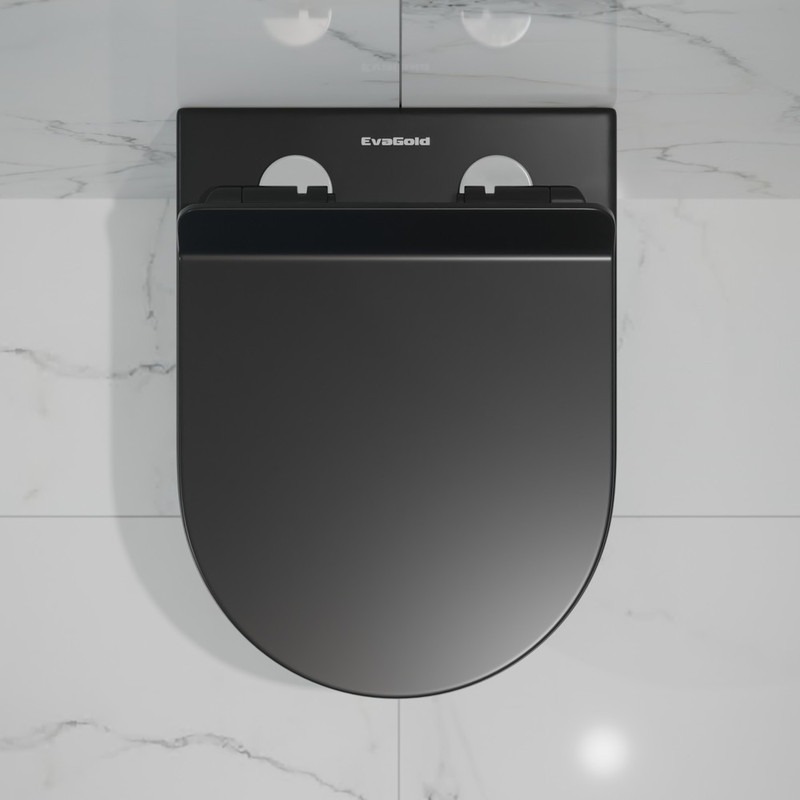Унитаз подвесной безободковый EvaGold EG070003 с тонкой крышкой микролифт, чёрный матовый