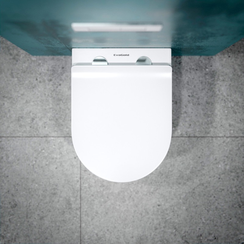 Унитаз подвесной безободковый EvaGold EG070017 с тонкой крышкой микролифт, белый мрамор