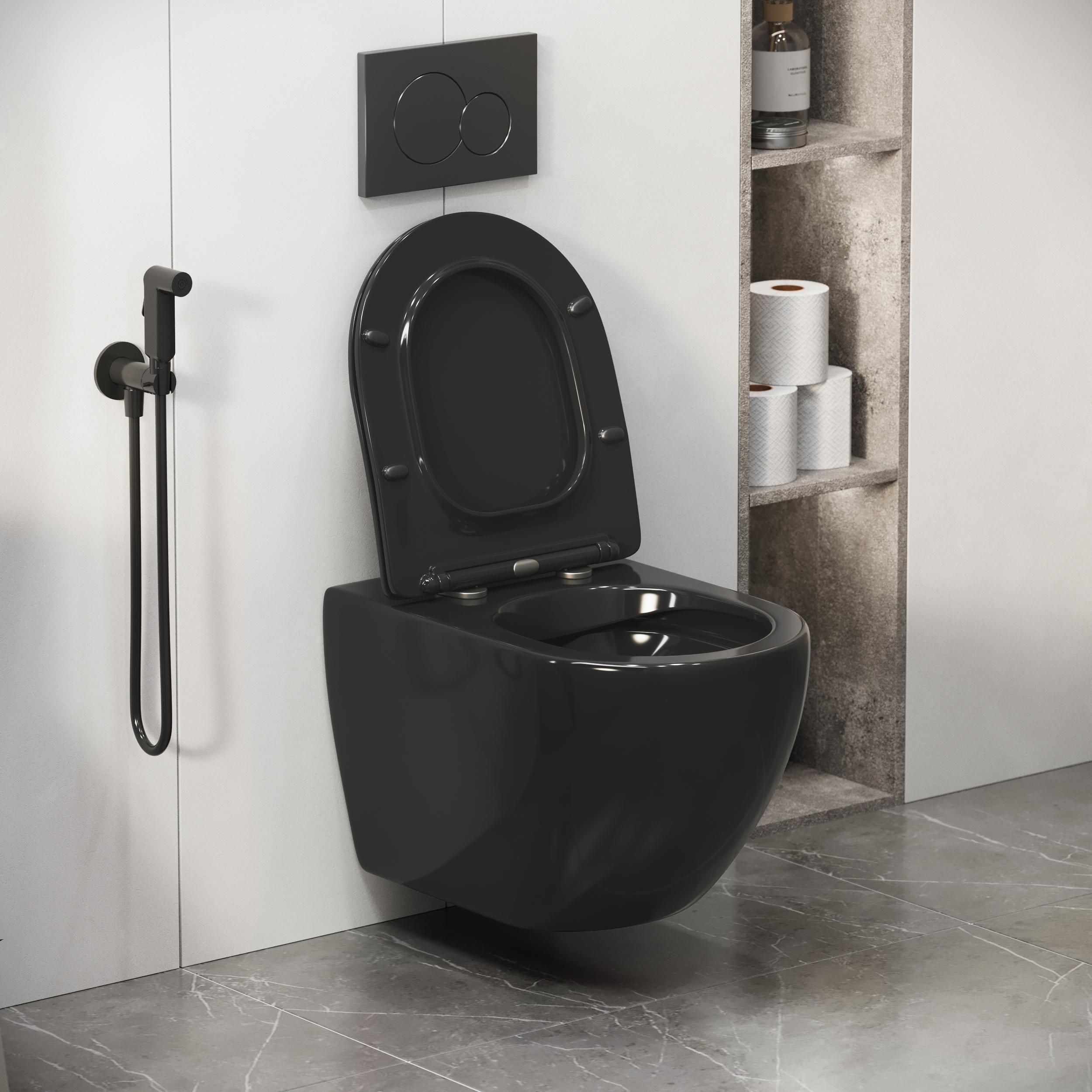Унитаз подвесной безободковый Grossman Color GR-4411blackS с крышкой микролифт, чёрный глянцевый