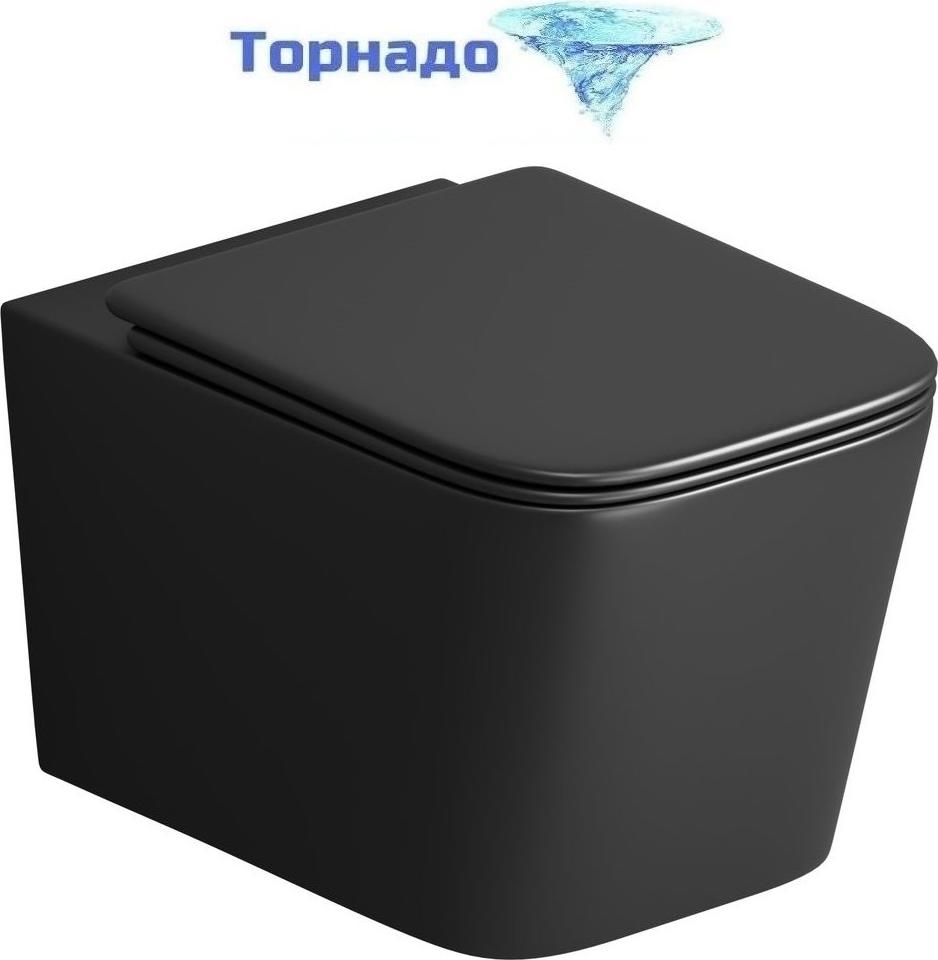 Унитаз подвесной безободковый Grossman GR-4404BMSQ с крышкой микролифт, чёрный матовый (Система смыва торнадо)