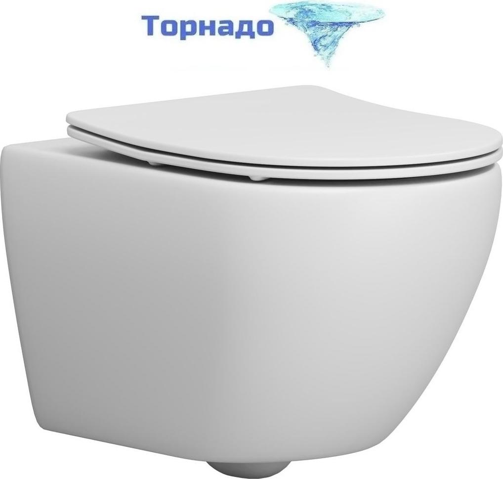 Унитаз подвесной безободковый Grossman GR-4457MSQ с крышкой микролифт, белый матовый (Система смыва торнадо)