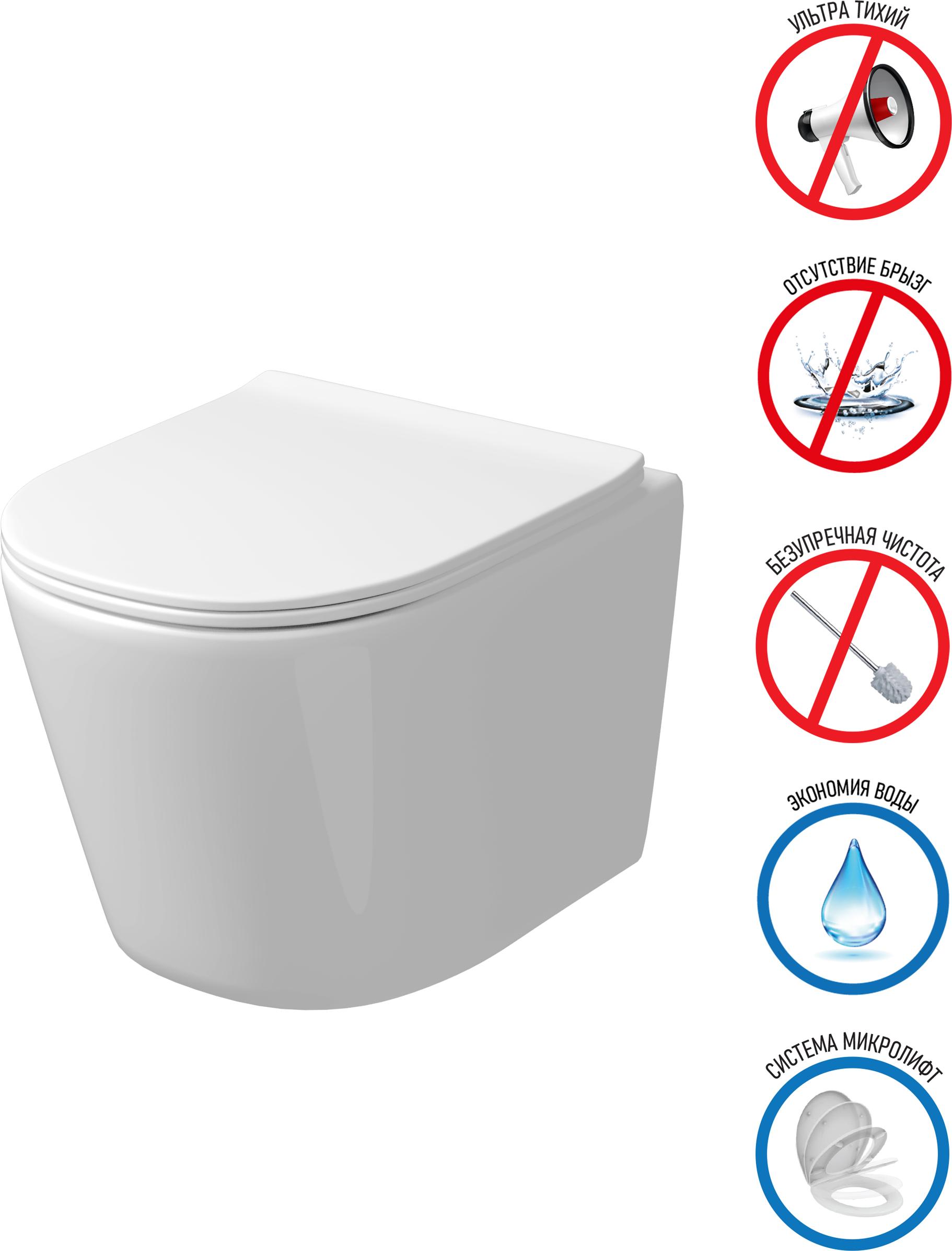 Унитаз подвесной безободковый Grossman GR-4477SQ, в комплекте сиденье с крышкой микролифт, цвет белый.