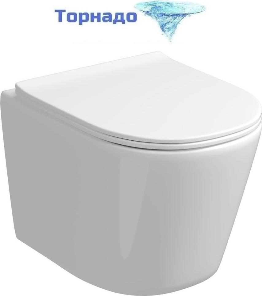 Унитаз подвесной безободковый Grossman GR-4477SQ с крышкой микролифт (Система смыва торнадо)